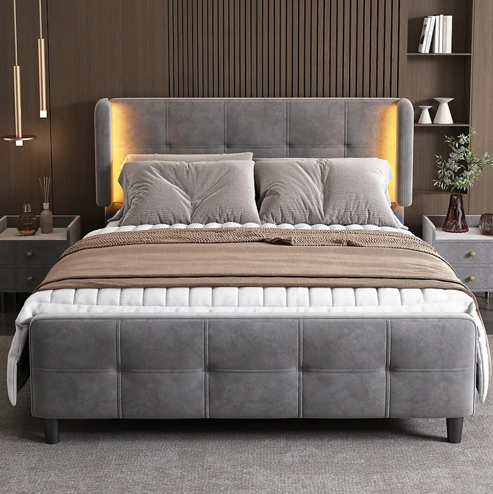 - 【Design Élégant】 Le design moderne et raffiné du lit, avec un tête de lit et un pied de lit matelassés, apportent une touche luxueuse à votre chambre. Les coutures du tissu ajoutent à l’esthétique tout en garantissant un confort optimal.