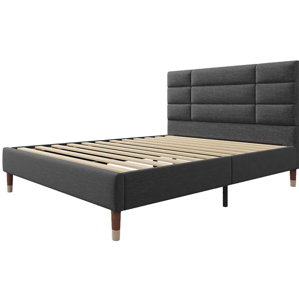 - 【Esthétique Élégante】Le cadre de lit arbore une finition sobre et raffinée qui s’intègre facilement à tout style d’intérieur, avec des pieds ornés d’un placage effet bois et laiton pour une touche luxueuse.