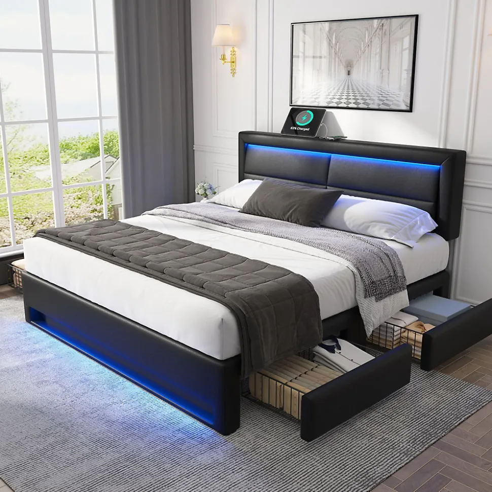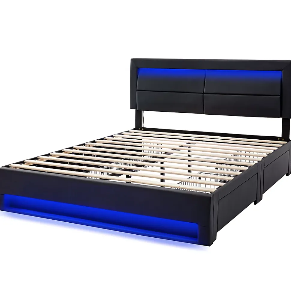 - 【Éclairage LED Ambiant】 L’éclairage LED intégré propose 12 couleurs différentes, vous permettant de personnaliser l’ambiance de votre chambre. Utilisez la télécommande pour ajuster la lumière selon vos préférences, idéal pour la lecture ou la relaxation.