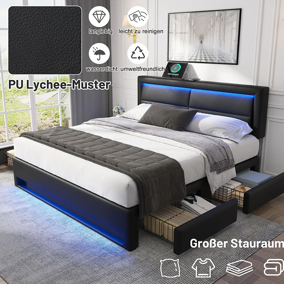 - 【Rangement Pratique】 Ce lit dispose de quatre tiroirs de rangement, un de chaque côté, pour organiser vos vêtements, draps ou autres objets. Gardez votre chambre propre et ordonnée sans sacrifier de l’espace.