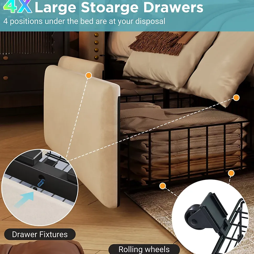 - 【Rangement Intelligent】 Les quatre tiroirs sur roulettes permettent d’accéder facilement à vos couvertures et vêtements, et peuvent être suspendus aux barres métalliques pour un rangement modulable et une chambre parfaitement ordonnée.