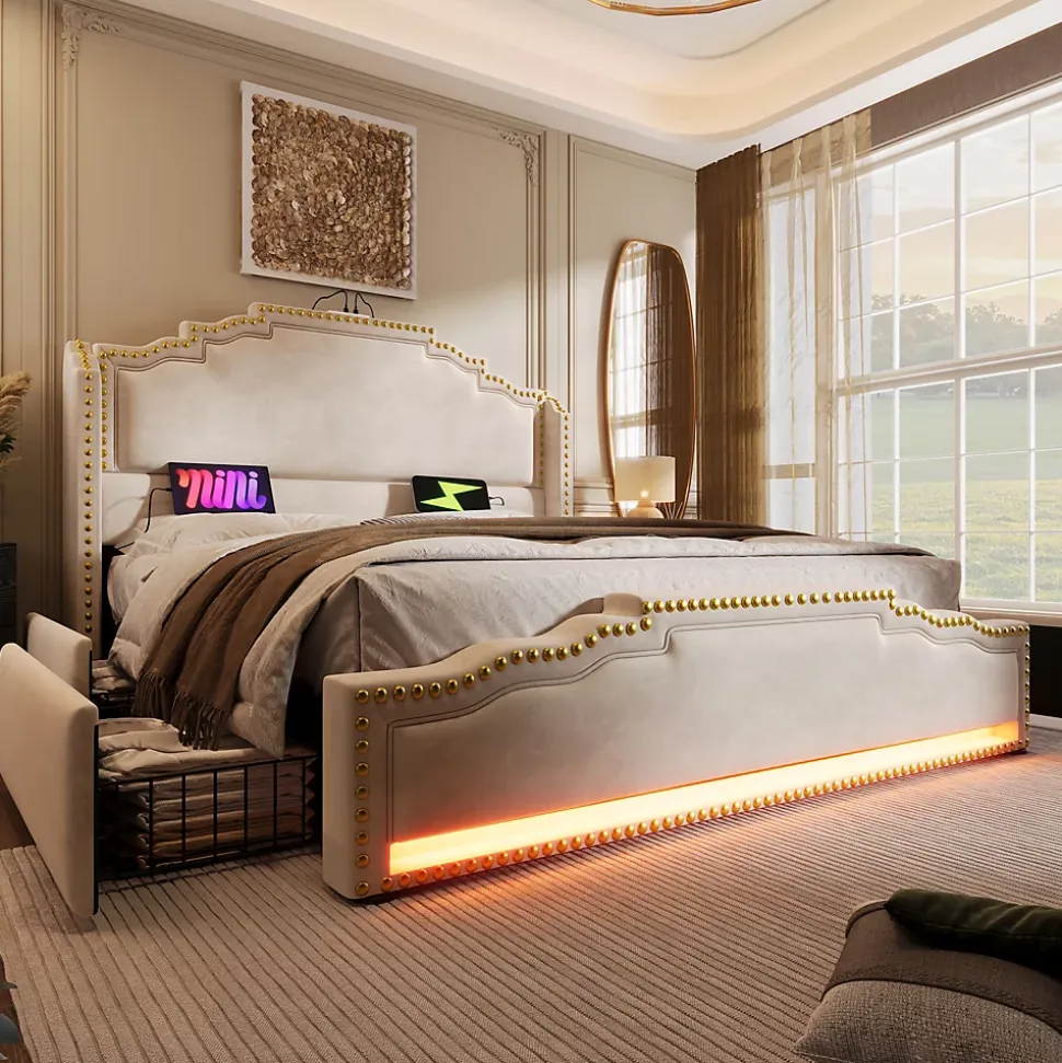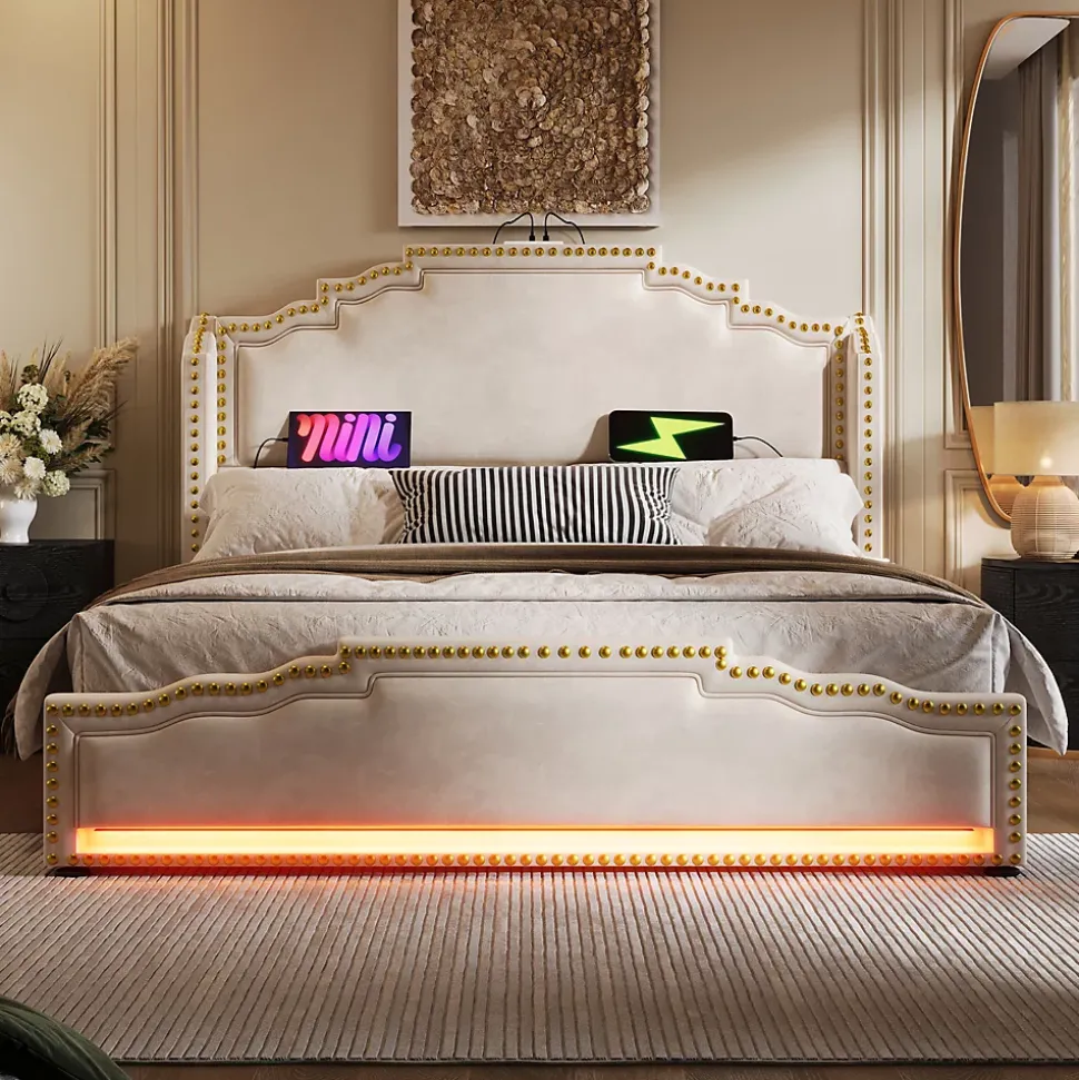 - 【Connectivité Pratique】 Les ports USB et Type-C intégrés au lit permettent de recharger facilement vos appareils à portée de main, assurant confort et praticité au quotidien sans interrompre vos activités ni votre repos.