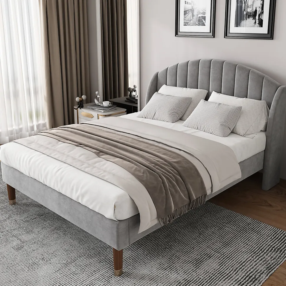 ▶ ▶ Détails ▶────────────────● Dimensions du produit : 206 x 148 x 108 cm● Matériau principal : Velours● Couleur : Gris● Capacité de charge maximale : 300 kg● Hauteur sous le lit : 20 cm● Surface de couchage : 140 x 200 cm (Sans matelas)● Matériau des lattes : Bois● Poids du produit : 30.2 kg● Nombre de colis : 2● Méthode de montage : Auto-assemblage► Remarques ►※ Ce produit est expédié en 2 colis, qui peuvent arriver à des moments différents. Merci de votre patience.※ Une marge d’erreur de 2 à 3 cm peut survenir en raison des mesures manuelles.※ Des différences de couleur peuvent apparaître entre les images et le produit réel en raison de l’éclairage. Veuillez vous référer au produit effectivement reçu.※ Si vous avez des questions lors de l’installation, veuillez nous contacter dès que possible.
