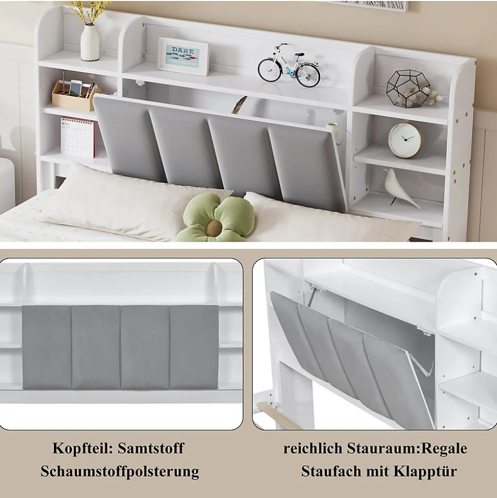- 【Espace de rangement généreux】 Les compartiments ouverts et modulables offrent une solution flexible pour ranger livres, jouets ou effets personnels, tandis que le sommier rembourré en velours assure confort et soutien pour le dos.