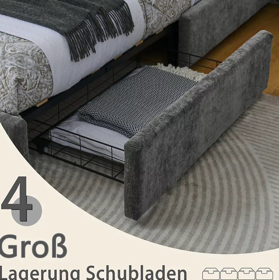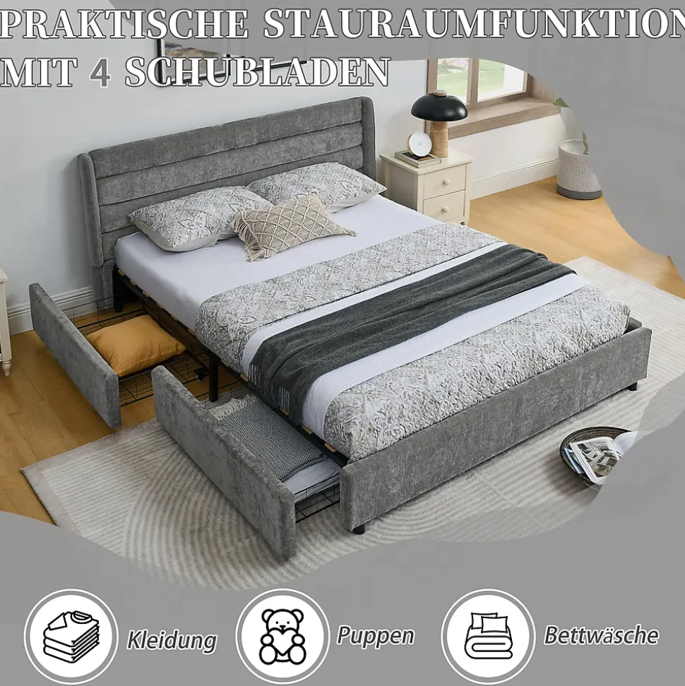 - 【Rangement intégré】 Quatre tiroirs spacieux sous le lit offrent un stockage pratique pour vêtements, literie et accessoires, gardant la chambre organisée et optimisant l’espace, parfait pour appartements et chambres multifonctions.