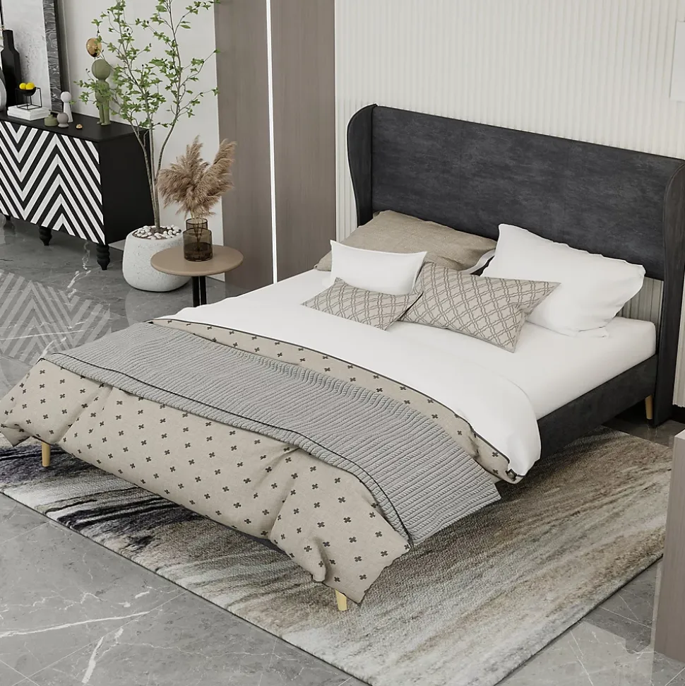 - 【Design contemporain】 Ce cadre de lit combine élégance et modernité avec une tête de lit en velours hollandais, apportant sophistication et confort tout en s’intégrant harmonieusement à divers styles de chambre.