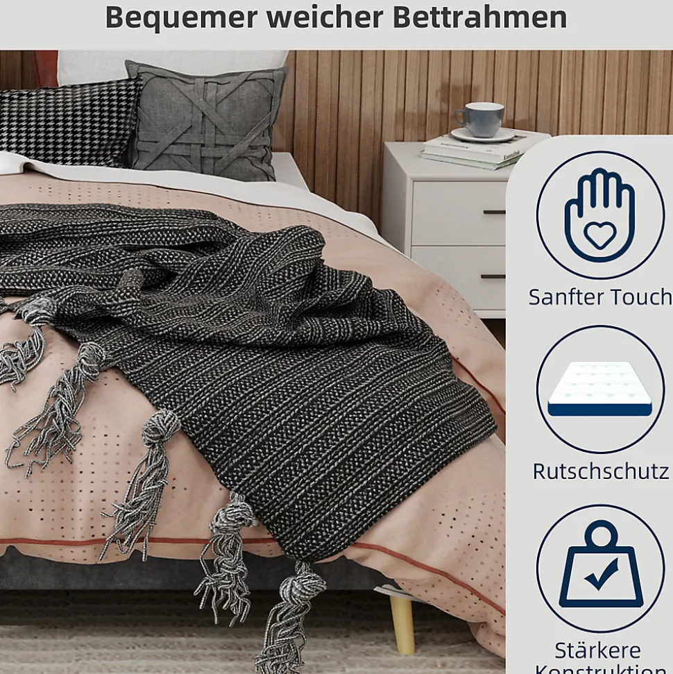 - 【Matériaux Haut de Gamme】 Revêtu de tissu Hollandwool doux et agréable pour la peau et combiné à une structure en bois robuste, ce lit allie esthétique noble et confort durable pour votre bien-être.