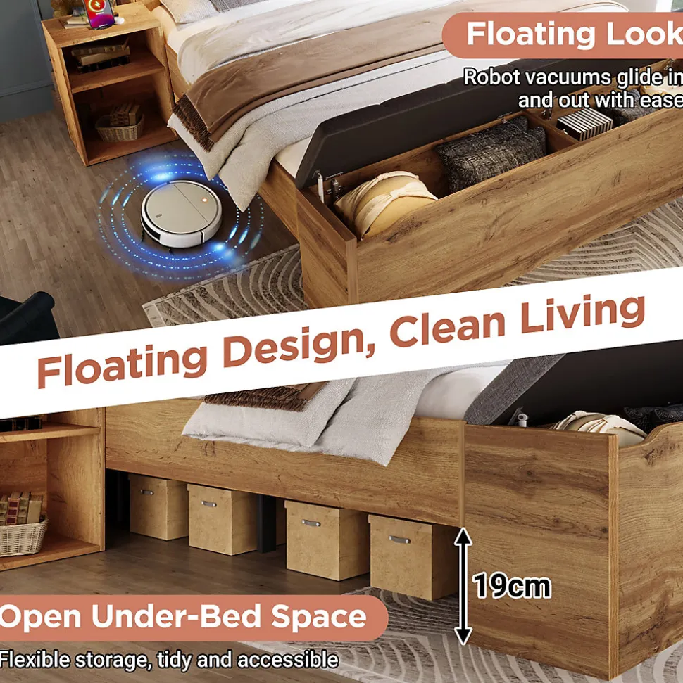 - 【Tables de chevet modulables】 Les deux tables de chevet avec niches ouvertes peuvent être positionnées librement à gauche ou à droite de la tête de lit, s’adaptant aux habitudes et à l’organisation de chaque utilisateur.