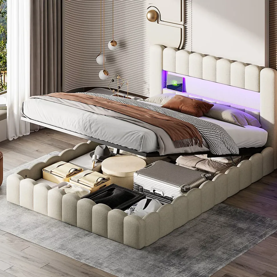 1.Design classique : ce lit rembourré allie fonctionnalité et beauté, avec un tissu en lin gris et des bandes lumineuses LED pour rendre votre chambre unique.2.Immense espace de rangement : le lit dispose d’une fonction de rangement de tiges pneumatiques. L’espace de rangement sous le lit équivaut à une grande armoire à deux portes, pouvant ranger vêtements et couettes pour toutes les saisons.3.Lit multifonctionnel : le chevet est équipé de bandes lumineuses colorées à sept couleurs, qui peuvent être contrôlées par télécommande ou par téléphone portable.4.Tissu en lin doux et respirant : doux, confortable et respirant, vous permettant de vous allonger sur le lit très confortablement et de profiter du plaisir ultime.5.Stable et durable : le cadre de lit est fabriqué en métal, MDF solide et panneaux de particules. Le métal en forme de croix assure une connexion sécurisée. La construction garantit la durabilité et un cadre de lit stable sans tête de lit bancale.6.Dimensions hors tout du lit : 220 x 193 x 96 cm (longueur x largeur x hauteur). Le lit convient pour un matelas de 190 x 200 cm (matelas non inclus). Capacité de charge maximale du lit : 300 kg. Tous les outils et instructions sont livrés avec le lit, ce qui facilite l’assemblage.7.Remarque : Pour éviter d’endommager le produit, le lit est expédié en trois colis. Parfois, trois colis peuvent ne pas arriver le même jour, veuillez attendre patiemment 2 à 3 jours, ou si vous avez des questions, veuillez nous contacter pour répondre à vos questions.