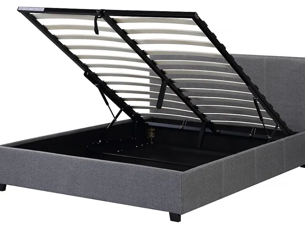 Lit « Carla »Offrez-vous un moment de détente avec ce lit double ! Idéal pour tous les univers de décoration, il ira à ravir avec votre chambre. Ajoutez un matelas de notre gamme et passez un instant privilégié dans votre petit chez vous. C’est cadeau !Un coffre de rangement intégré vous permettra en plus de dissimuler toutes vos affaires !Existe en plusieurs dimensions. Existe en plusieurs coloris. Lit coffre double « Carla » – Gris – Coffre de rangement en toile – Dimensions lit : 203 x 147 x 86 cm – Dimensions matelas : 140 x 190 cm – Sommier inclus .Descriptif: Apportez un changement à votre quotidien avec notre lit Carla – Sommier à lattes et tête de lit inclus – Matelas vendu séparément – Fond du coffre en toileMatières: TissuMatière(Filtre): TissusCouleurs: GrisFinition: Polyestercouleur (filtre): Gris.Dimensions: 203 x 147 x 86 cmDimensions du couchage: 140 x 190 cmDimensions (Filtre): 140 x 190 cmSommier: Dimensions lattes : 65 x 5.2 x 0.9 cm Nombre de lattes : 26 – ContreplaquéCoffres: 142 x 192 x 24 cmFond du coffre en toilepieds: 6 x 3 x 5 cmPoids: 44.5 kgColisage: 2 colis : – 1,5 x 1,02 x 0,07 m, 16,2 kg – 2,02 x 0,275 x 0,16 m, 28,5 kg