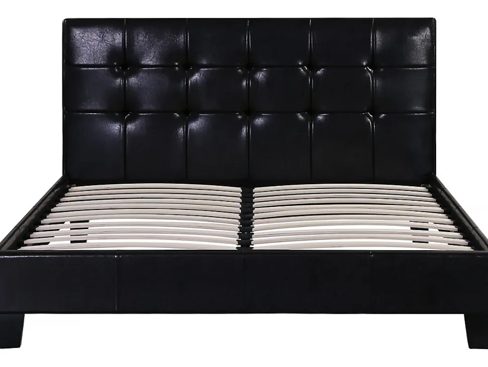Lit « Julia »Ce lit en PVC à la finition brillante joint style, esthétique et qualité.Avec sa tête de lit capitonnée et ses dimensions généreuses, le modèle « Julia » saura vous séduire et s’inclura parfaitement à la décoration de votre chambre à coucher.Son design chic et son confort vont faire de ce lit l’élément-clé de votre chambre et vous donneront envie de prolonger votre nuit. Lit adulte double « Julia » 2 personnes – Noir – Dimensions lit : 204 x 147 x 89 cm – Dimensions matelas : 140 x 190 cm – Tête de lit capitonnée – Sommier inclus – Finition brillante – En PVC .Descriptif: Le lit double Julia possède une magnifique tête de lit – 140 x 190 cm – Ce lit est fourni avec un sommier – Sa couleur noir se marie avec tous les décors – Livré sans matelas.Matière(Filtre): Simili cuirMatières: Simili cuirCouleurs: noirFinition: Finition en PU (polyuréthane) – PVC brillantcouleur (filtre): NoirDimensions: 204 x 147 x 89 cmDimensions du couchage: 140 x 190 cmDimensions (Filtre): 140 x 190 cmSommier: Dimensions lattes : 70.9 x 5.3 x 0.9 cm Nombre de lattes : 24 – Contreplaquépieds: Dimensions : 6,5 x 3,3 x 20 cm Nombre de pieds : 6 dont 2 sous sommier BoisPoids: 30 kgColisage: 2 colis : – 1,5 x 0,95 x 0,08 m, 14 kg – 2,04 x 0,2 x 0,15 m, 15 kg