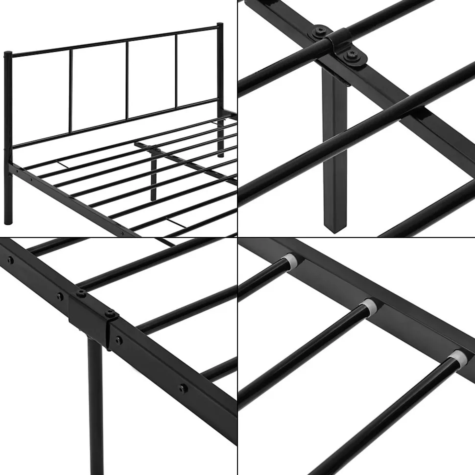 - La beauté de notre lit à structure métallique massive et robuste réside dans sa simplicité. Le lit en métal massif et robuste. Grâce à la tête de lit classique et à la fois élégante, le lit peut être l’ornement de votre chambre à coucher.
