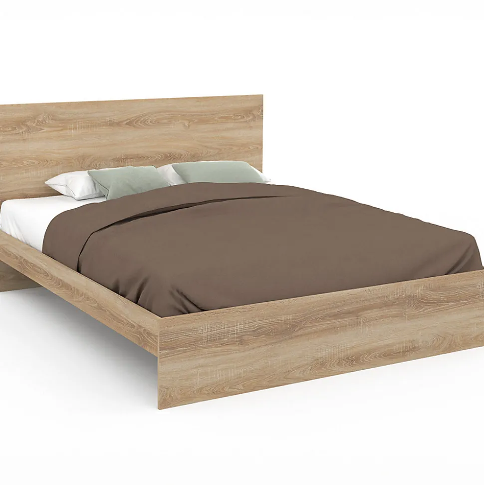 Décorez et aménagez votre chambre avec une touche naturelle et bohème ! Avec sa couleur bois de hêtre, le lit double OMAHA 160×200 cm trouvera facilement sa place dans votre chambre à coucher ou dans une chambre d’amis et s’accordera avec tout votre mobilier. Élégant, ce lit se compose d’une grande tête de lit d’une hauteur de 90cm (à partir du sol), d’un cadre de lit et d’un large pied de lit afin de garantir plus de stabilité. L’ensemble de la structure est composée de panneaux de particules de bois ce qui lui confère une grande solidité. Pour plus de confort, le lit OMAHA 160×200 cm est livré avec un sommier 26 lattes avec zone lombaire renforcée. Vous allez aimer faire la grasse matinée dans ce lit moderne et confortable ! Laissez vous séduire par le design épuré du lit OMAHA avec tête de lit et sommier 160×200 cm couleur hêtre et amenez un style naturel et chaleureux à votre chambre à coucher !Dimensions du lit double OMAHA 160×200 cm Dimensions globales : Longueur 206 cm x largeur 168 cm x Hauteur 90 cm Dimensions standard pour un matelas 160 x 200 cm 2 places Dimensions de la tête de lit : 90 x 168 cm Hauteur du cadre de lit : 30 cm Hauteur entre le cadre de lit et le sol : 20cm Matériaux : structure en PB, bois et métalSommier 26 lattes inclusColoris hêtre Matelas non fourni Produit non livrable en Corse À monter soi-même Retrouvez l’ensemble de notre gamme de lits sur notre boutique en ligne !