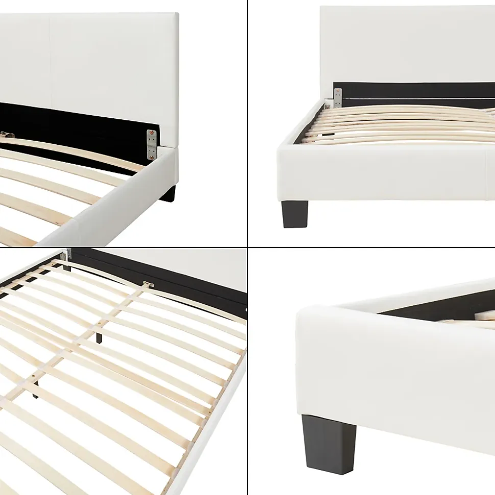 Lit double rembourréCe lit double élégant sera le choix parfait pour votre chambre gâce à son rembourrage en similicuir de qualité et sa forme arrondie.Description :- construction robuste- montage facileMatière : PU similicuir matCouleur : blancDimensions totales (lo x la) : ca. 210 cm x 189 cmSurface de couchage (lo x la) : 200 cm x 180 cmHauteur de tête de lit : 78 cmContenu de la livraison :1 x lit double1 x sommier à lattesLe matelas, l’oreiller, la couverture et les objets déco ne font pas partie de l’offre. Produit de la marque Corium.