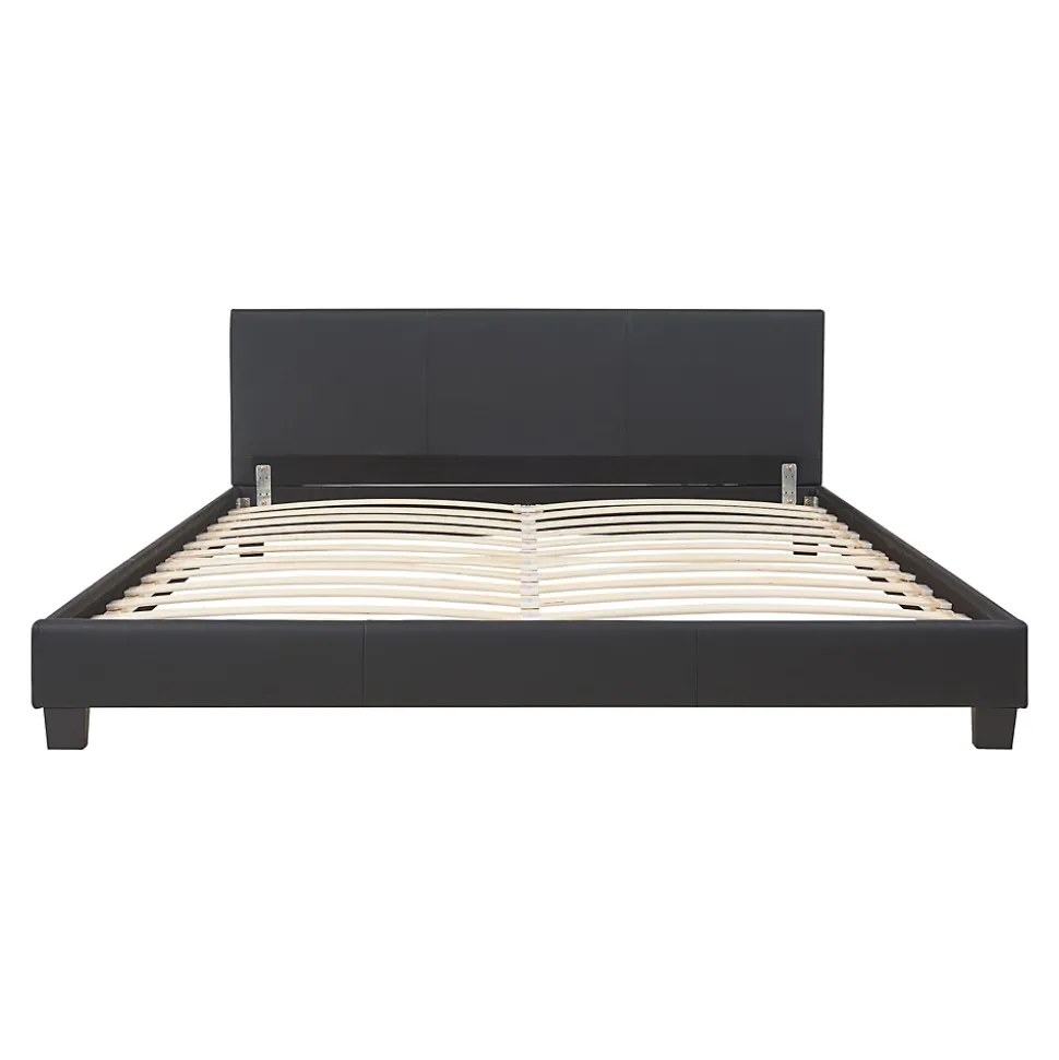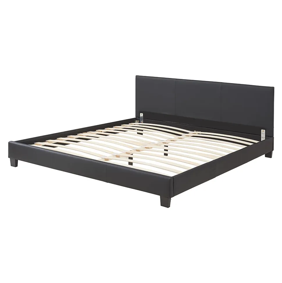Lit double rembourréCe lit double élégant sera le choix parfait pour votre chambre gâce à son rembourrage en similicuir de qualité et sa forme arrondie. Matière : PU similicuir matCouleur : noirDimensons extérieure (lo x la) : ca. 210 cm x 169 cmSurface de couchage (lo x la) : 200 cm x 160 cmHauteur de tête de lit : 78 cmContenu de la livraison :1 x lit double1 x sommier à lattesLe matelas, l’oreiller, la couverture et les objets déco ne font pas partie de l’offre. Produit de la marque Corium.