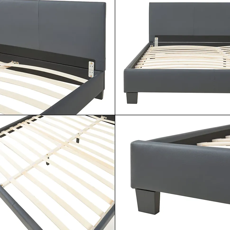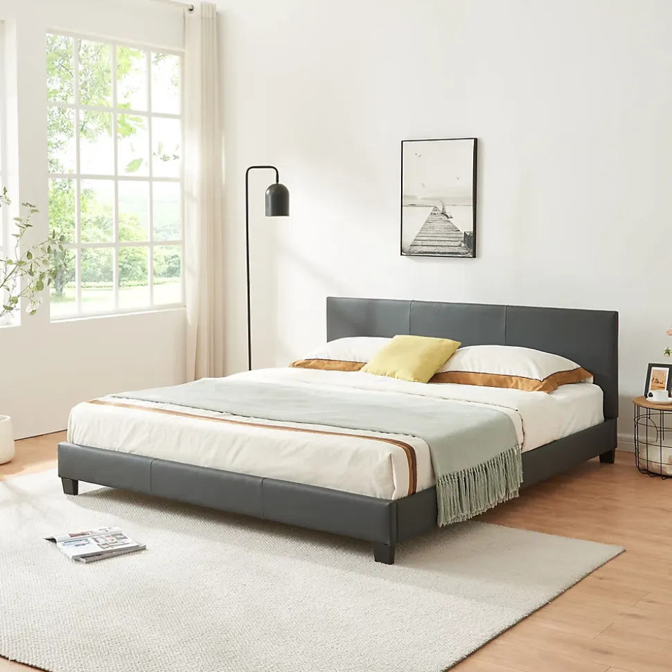 Lit double rembourréCe lit double élégant sera le choix parfait pour votre chambre gâce à son rembourrage en similicuir de qualité et sa forme arrondie.Description :- construction robuste- montage facileMatière : PU similicuir matCouleur : gris foncéDimensions totales (lo x la) : ca. 210 cm x 189 cmSurface de couchage (lo x la) : 200 cm x 180 cmHauteur de tête de lit : 78 cmContenu de la livraison :1 x lit double1 x sommier à lattesLe matelas, l’oreiller, la couverture et les objets déco ne font pas partie de l’offre. Produit de la marque Corium.