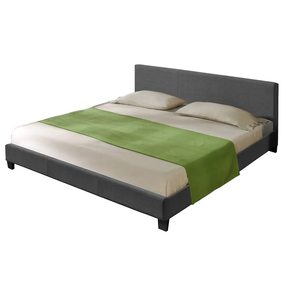 Lit double rembourré Ce lit double élégant sera le choix parfait pour votre chambre gâce à son rembourrage de tissu de qualité.Matière : tissu, polyester 100%Couleur : gris foncéDimensons extérieures (lo x la) : ca. 210 cm x 189 cmSurface de couchage (lo x la) : 200 cm x 180 cmHauteur de tête de lit : 78 cmContenu de la livraison :1 x lit double1 x sommier à lattesLe matelas, l’oreiller, la couverture et les objets déco ne font pas partie de l’offre. Produit de la marque Corium.