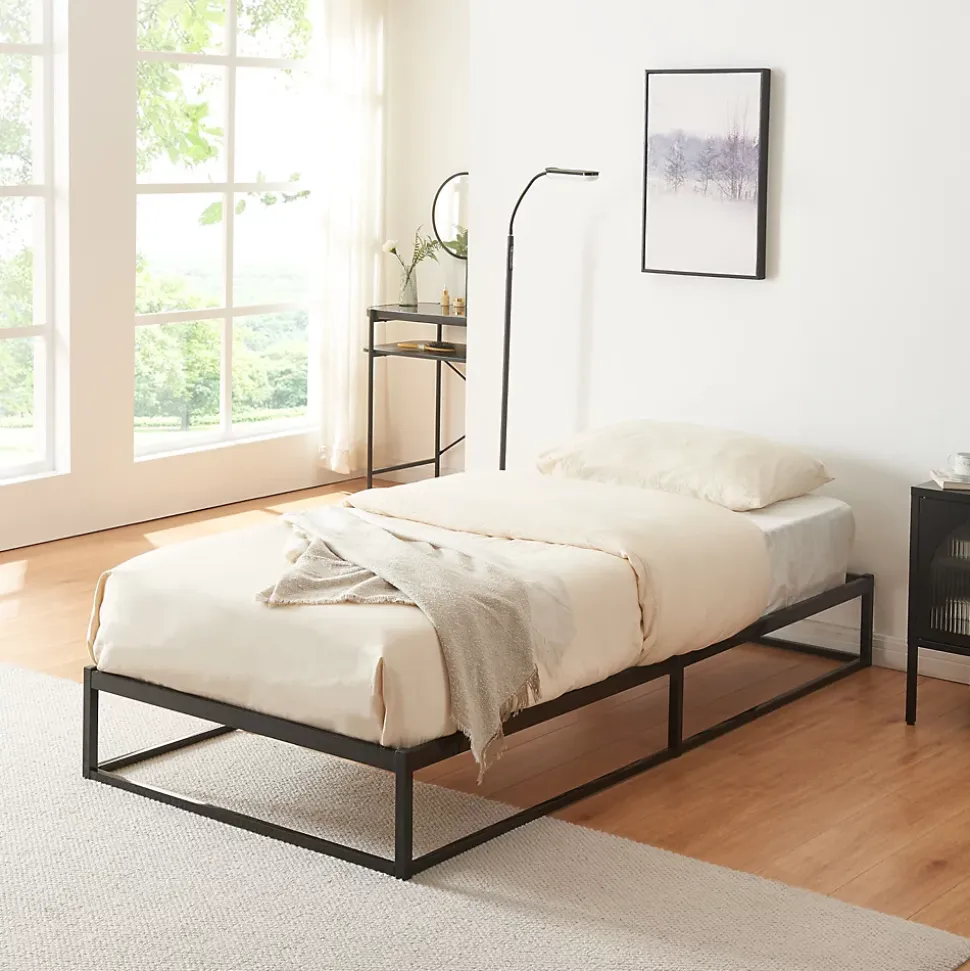 Lit en métalNotre lit moderne et intemporel, s’intègre aisément dans divers styles de décoration tout en apportant une touche d’élégance.Facile à monter gâce à des instructions claires, il vous garantit rapidement un espace de repos confortable. Sa structure métallique robuste offre une excellente stabilité et supporte une charge importante, tandis que les barres solides assurent un soutien optimal pour le matelas, favorisant un sommeil réparateur.Pratique, sa surface résistante aux rayures est facile à nettoyer, et son cadre surélevé permet une espace de rangement discret sous le lit. Transformez votre chambre en un havre de paix propice à la détente et aux doux rêves.Points forts :- lit simple intemporel et élégant- montage rapide et simple- surface résistante aux rayures et aux chocs pour une longue durée de vie- entretien facile- capacité de charge jusqu’à 150 kgMatière :acier laquéDimensions :- totales (longueur x largeur x hauteur) : 205 x 95 x 25 cm- surface de couchage (longueur x largeur) : 200 x 90 cmCouleur :noirContenu de la livraison :1 x lit en métalImportant :Le matelas, l’oreiller, la couverture et tous les autres objets de décoration ne sont pas compris dans la livraison !Remarque :Pour des raisons logistiques, le retrait sur place n’est pas possible.La livraison se fait jusqu’au trottoir ou à la porte d’entrée, sans montage.Produit de la marque :[en.casa]
