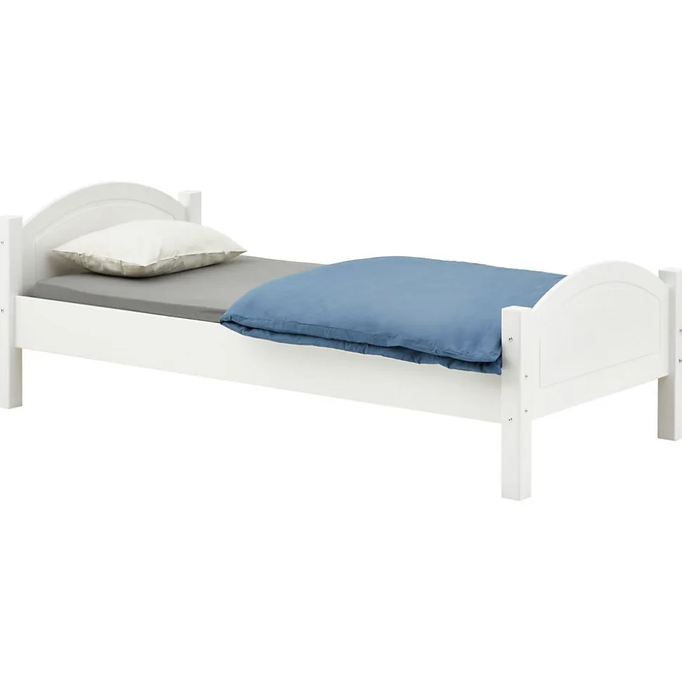 Le lit en pin Flims … apportera beaucoup de charme à votre chambre ou celle de vos enfants, grâce à son aspect naturel. Son design moderne et intemporel s’intègrera facilement avec le reste de votre mobilier. Réalisé en pin massif, il vous garantira une grande solidité et résistance. Sa tête et son pied de lit aux courbes arrondies, seront parfait pour amener un style élégant et authentique à votre intérieur. Description des matériaux : – Le cadre de lit est fabriqué en pin massif recouvert d’une lasure blanche. – La madrure du bois reste visible. Caractéristiques du produit : – Couchage 90 x 200 cm – Barre de renfort transversale – Hauteur de la tête de lit : 71 cm – Hauteur du pie de lit : 60 cm – Hauteur conseillée du matelas : 13 cm – Cadre de lit stable Livraison et montage – Contenu de la livraison: lit, sans décoration, notice de montage – Le produit est livré en pièces détachées – Assemblage facile grâce à la notice – Sans sommier et sans matelas – Photo non contractuelle Résumé: – Dimensions pieds: 64 x 64 mm – Hauteur cadre de lit: 17 cm – Hauteur pan de lit: 37 cm – Hauteur pied de lit: 60 cm – Hauteur tête de lit: 71 cm – Profondeur d’insertion: 12 cm – Convient uniquement avec: Sommier fagot à lattes – Sommier: vendu séparément – Surface: Lasuré, La madrure du bois reste visible – Dimensions monté: 71 x 98 x 201 cm (H x L x L) – Couchage: 90 x 200 cm – Couleur: Blanc – Matériel: Pin massif