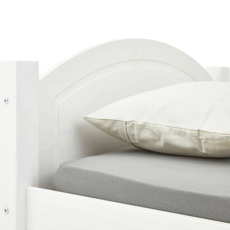 - Le cadre de lit est fabriqué en pin massif et est recouvert dune lasure de coloris blanc où la madrure du bois reste visible