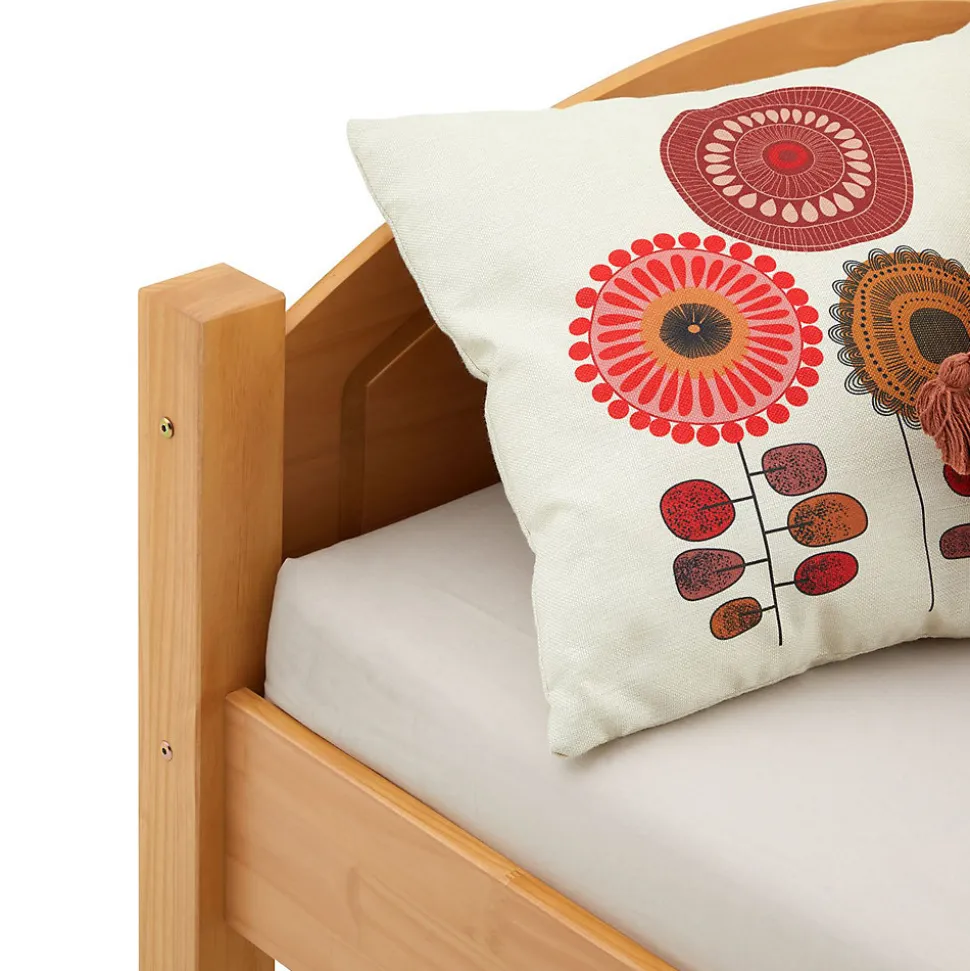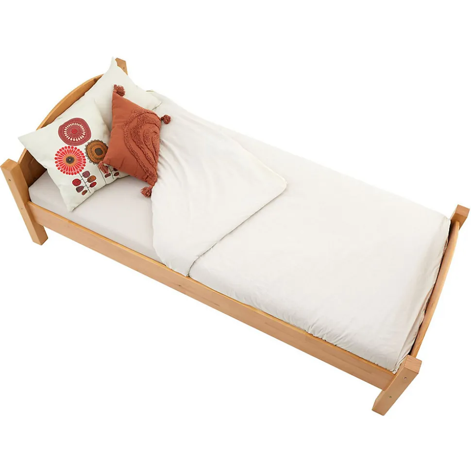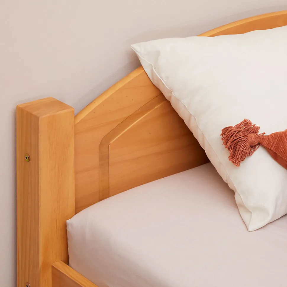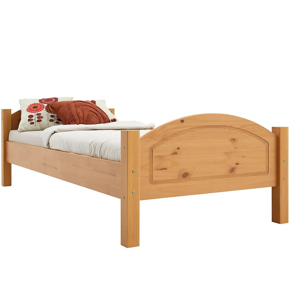 - Le cadre de lit est fabriqué en pin massif et est recouvert dune lasure à la finition couleur hêtre, où la madrure du bois reste visible
