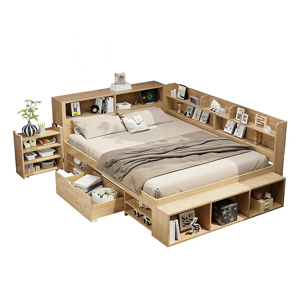 - GRAND ESPACE DE RANGEMENT : Armoire de rangement dissimulée à la tête du lit, un tiroir sur le côté du lit et des armoires autour du lit pour ranger divers objets tels que des vêtements, des jouets, des livres, etc.