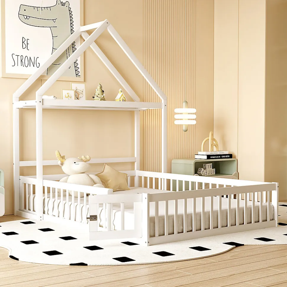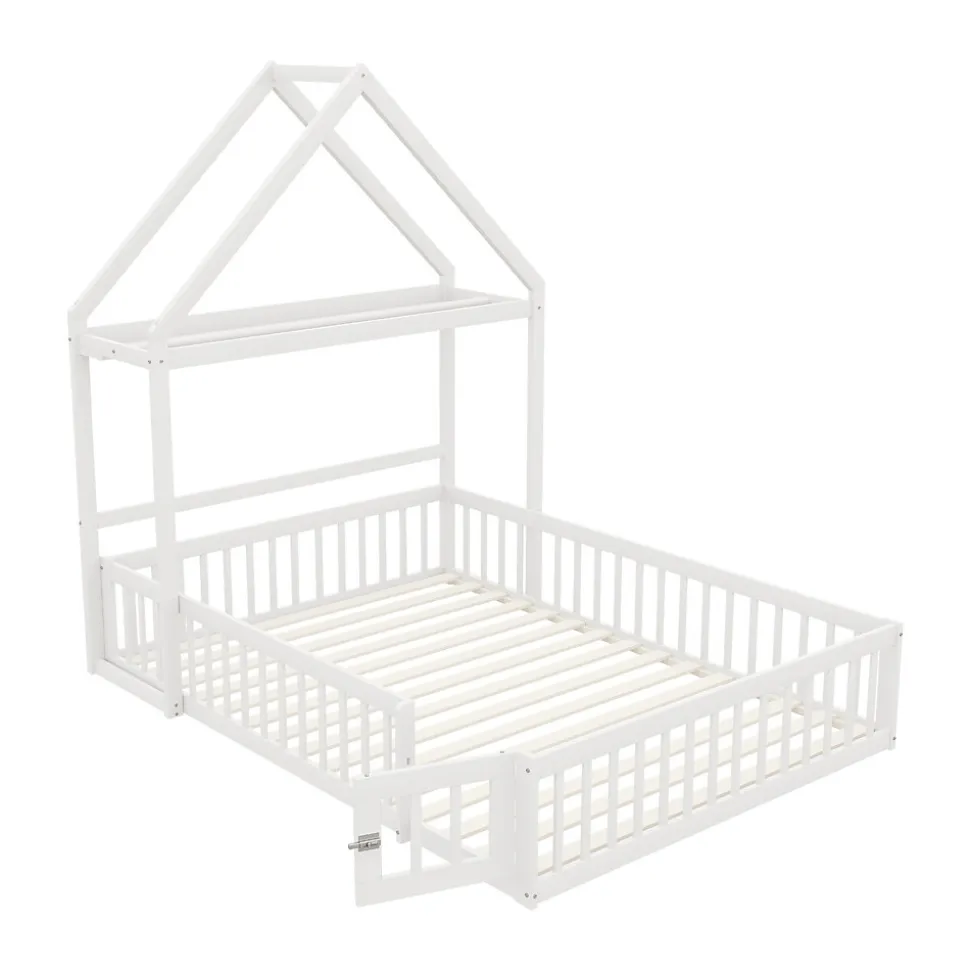 - 【Cadre Robuste et Sûr】 Construit en bois massif, le lit intègre un garde-corps complet et une petite porte fonctionnelle, garantissant un environnement sûr et stable tout en rendant le lit ludique et attrayant pour les enfants.