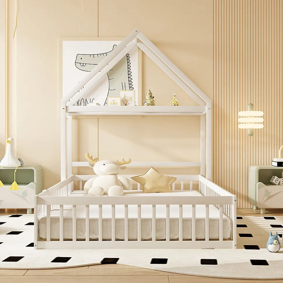 - 【Lit Multifonctionnel】 Le toit et le lit forment des unités indépendantes pouvant être combinées ou séparées selon les besoins, créant un espace polyvalent pour dormir, jouer ou lire et stimuler l’imagination des enfants.