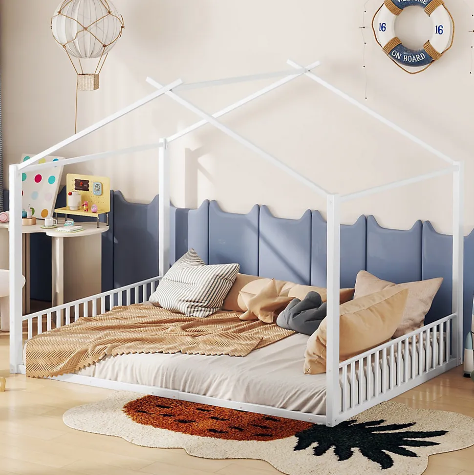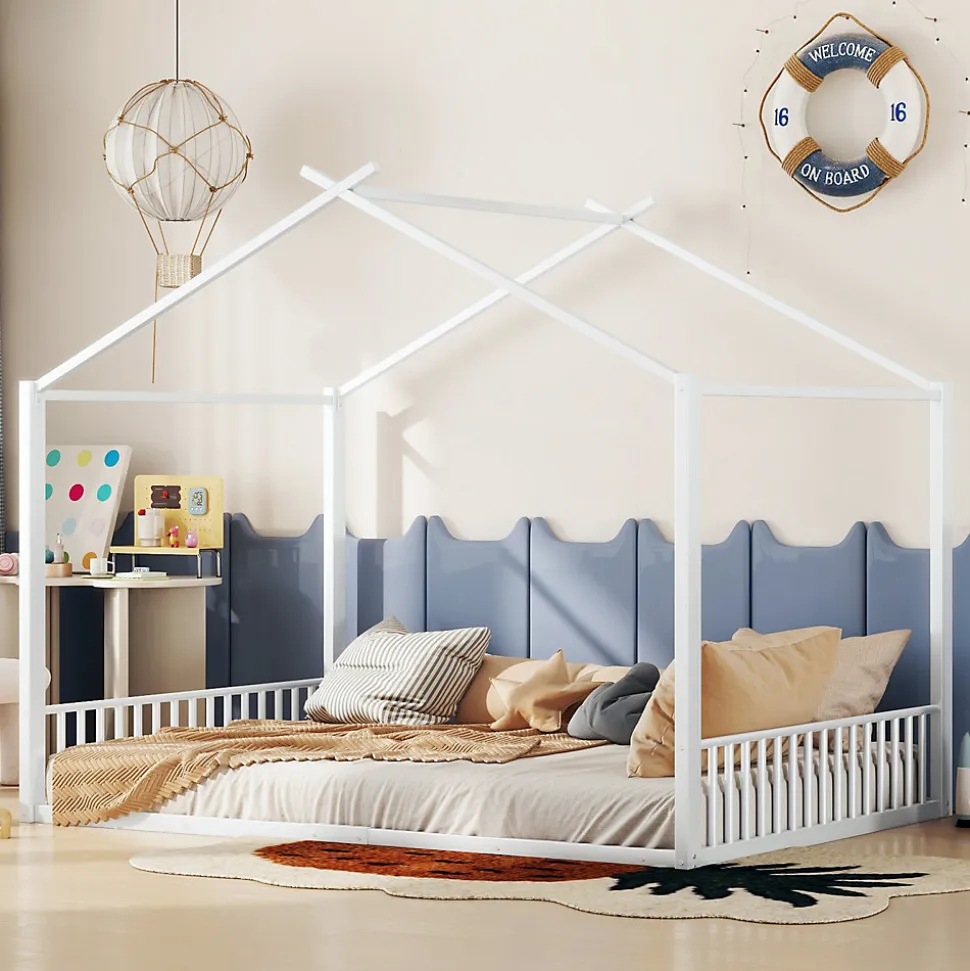 Lit bébé 140×200 cm – Métal avec design maison – BlancApportez confort, sécurité et style à la chambre de votre enfant avec ce lit bébé au design unique en forme de maison. Robuste et élégant, il allie sécurité, durabilité et esthétique moderne pour créer un espace de sommeil sûr et agréable.Caractéristiques principales :Matériaux de haute qualité : Structure en métal et panneaux MDF garantissant solidité, stabilité et sécurité pour votre enfant.Design original en forme de maison : La partie supérieure du lit reproduit une maison miniature, stimulant l’imagination des enfants et embellissant la chambre.Style simple et élégant : Design épuré et moderne, adaptable à tous les styles d’intérieur.Montage facile : Toutes les pièces et instructions sont fournies pour un assemblage rapide et sans stress.Entretien pratique : Design robuste et simple facilitant le nettoyage et l’entretien quotidien.Livraison depuis l’Allemagne : Expédié en un seul colis, avec possibilité d’arrivée séparée. Contactez le service client pour toute question ou assistance.Dimensions et informations supplémentaires :Dimensions totales : 205 x 147 x 165 cmDimensions intérieures : 140 x 200 cmCouleur : BlancMatériau : Métal + MDFNombre de colis : 1Montage : RequisCharge maximale : 150 kgÉpaisseur de matelas recommandée : 15-20 cmOrigine : Chine