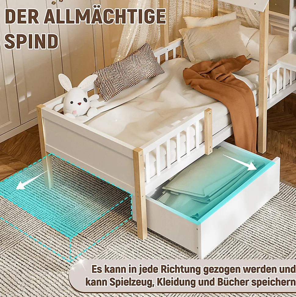 - [Stable et sûr] – La construction robuste en bois massif, la barrière de sécurité arrondie et le sommier à lattes durable garantissent un espace de sommeil sûr et stable pour les enfants.