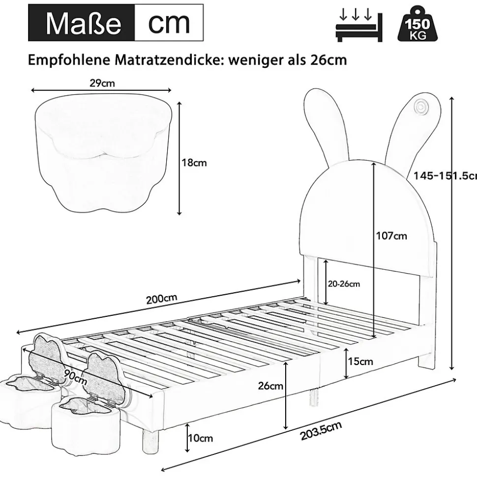 - 【Design Ludique avec Oreilles Pliables】 Les oreilles de lapin pliables ajoutent une touche d’amusement et de personnalisation, permettant aux jeunes de moduler l’aspect du lit selon leurs envies, stimulant leur créativité au quotidien.