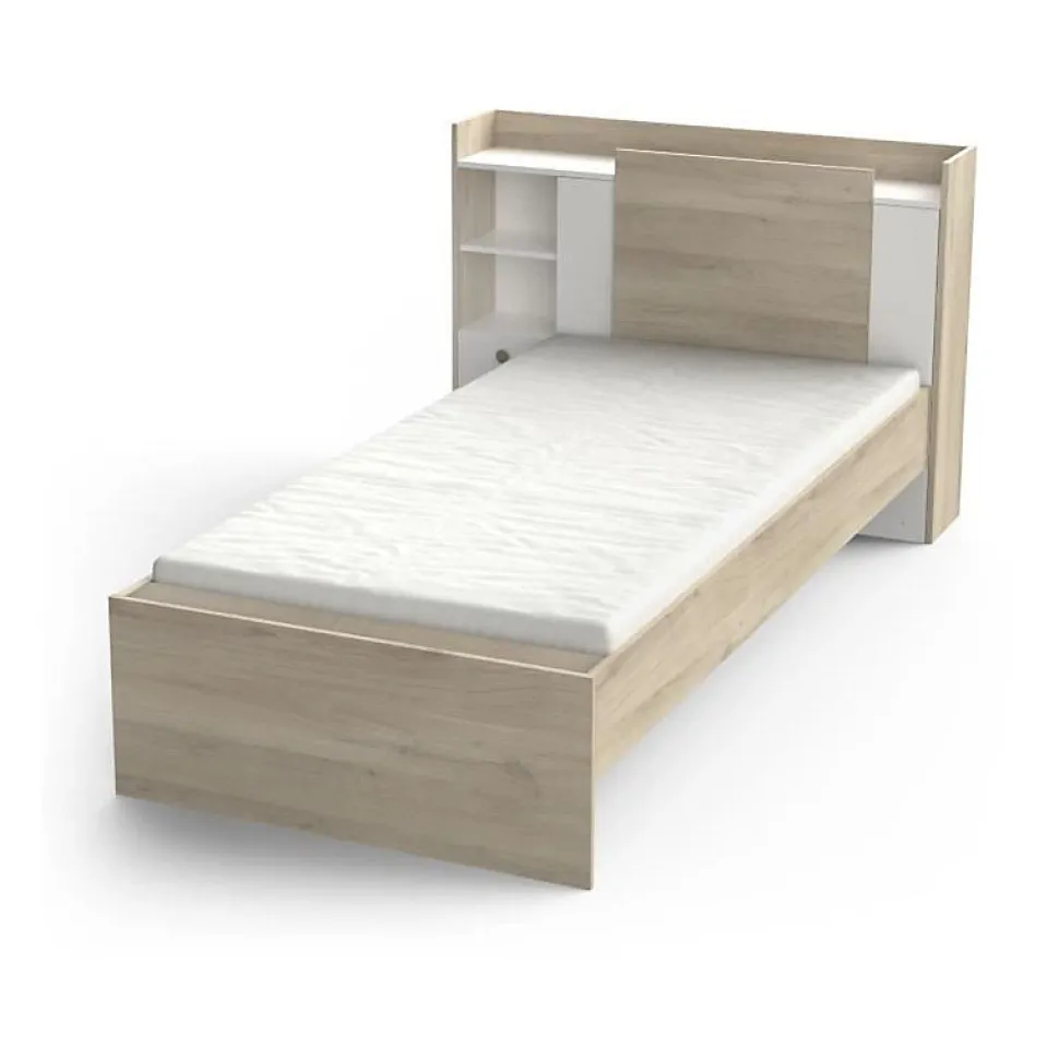 Lit enfant avec rangements Life – 90X190/200 – Décor Chene/blanc – DEMEYERE