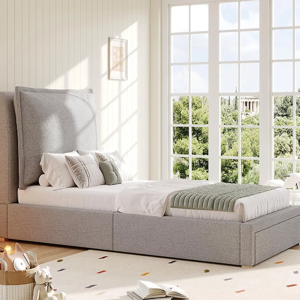 - Fini le désordre ! Un gain de place incroyable. Conception bien pensée du tiroir de pied. Un tiroir de pied spécialement conçu pour les chambres d’enfants offre de la place pour les vêtements, les jouets ou les livres d’images qui ne sont pas de saison. Ainsi, chaque centimètre est utilisé de manière optimale et votre petit logement semble plus grand.