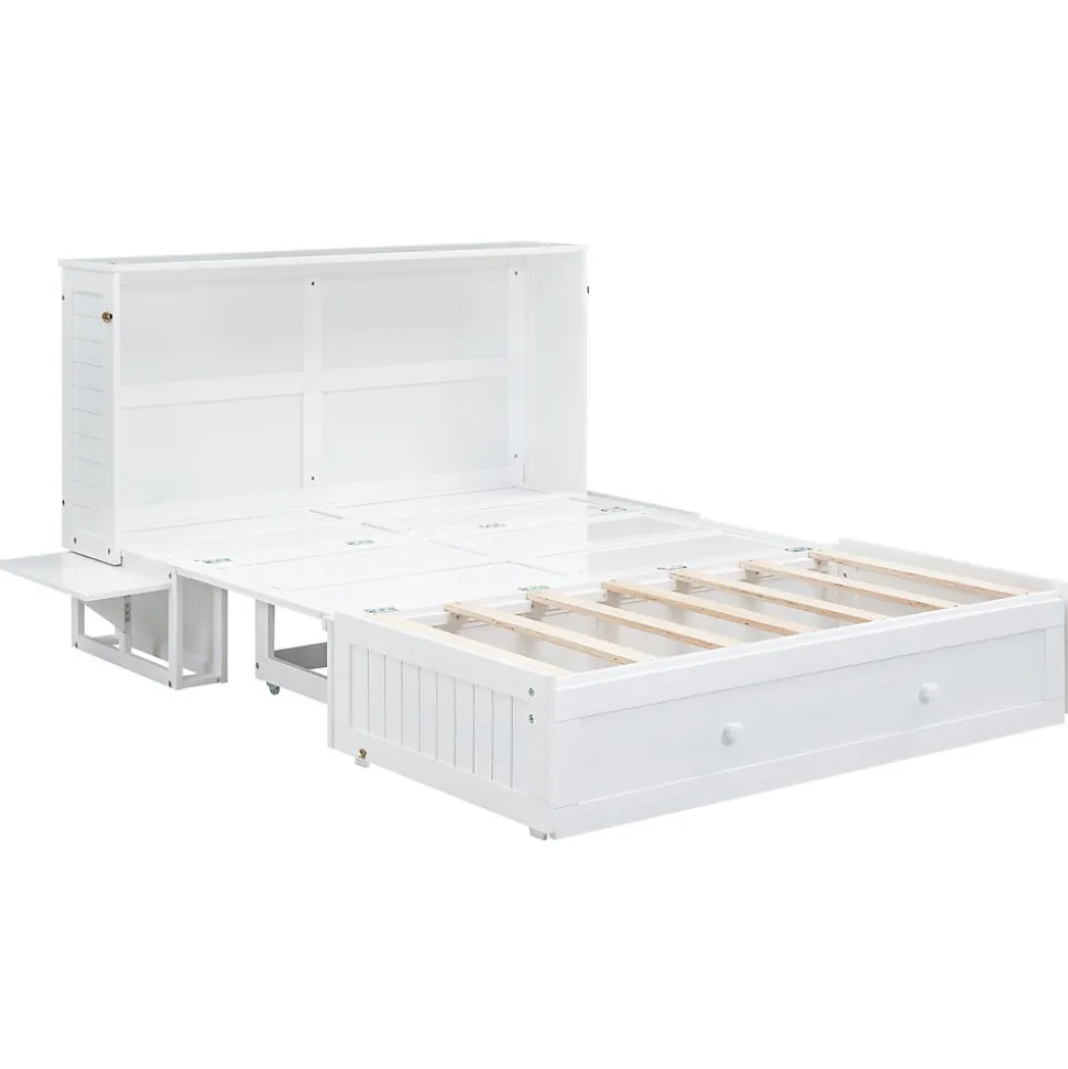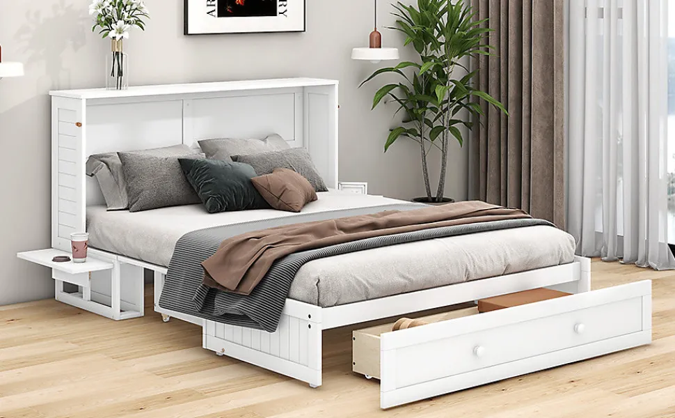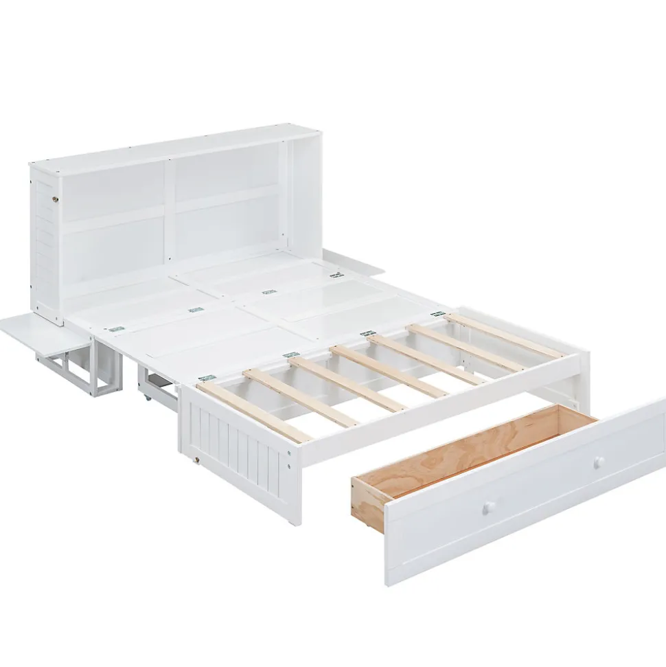 Description :Ce lit convertible offre à la fois un espace de sommeil confortable et des solutions de rangement pratiques. Il se transforme facilement en étagère ou en meuble de rangement en étant replié contre le mur. Il est fabriqué en pin massif et MDF, garantissant une longue durée de vie.Caractéristiques :Matériau : Pin + MDFDimensions : 140 x 200 cmCouleur : BlancPoids : 204 kgCapacité : 204 kgNombre de colis : 3Montage nécessaire : OuiDimensions du produit : 208.9 x 145.6 x 106.3 cmCaractéristiques détaillées :Construction robuste : Fabriqué en pin massif et MDF pour une durabilité maximale.Espace de rangement : Comprend des tiroirs sous le lit pour un espace organisé.Design ingénieux : Se transforme en étagère ou en meuble de rangement.Pratique et élégant : Idéal pour maximiser l’espace dans les petites pièces.Livraison en 3 colis : Les colis peuvent arriver séparément.