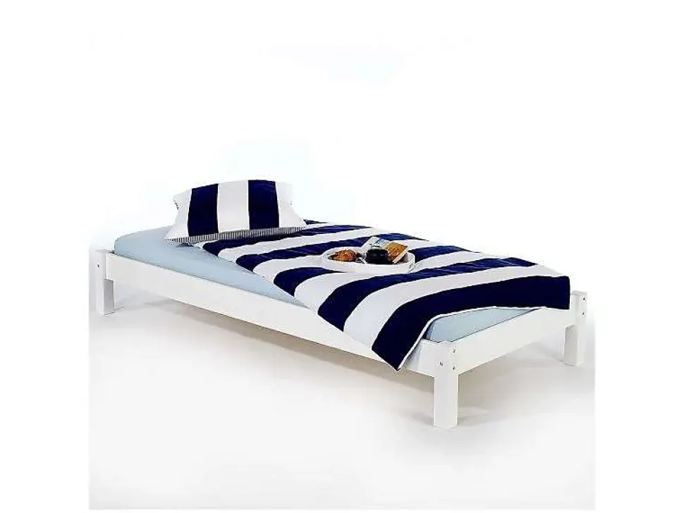 Le lit futon Taifun … au design sobre et élégant trouvera parfaitement sa place dns votre chmabre ou celles de vos enfants. Fabriqué en pin massif, il vous assurera une grande stabilité et apportera beaucoup de chaleur à votre intérieur. Sans tête de lit, vous pourrez l’installer dans toutes les pièces même celles mansardées. Son style naturel se mariera à coup sûr avec le reste de votre décoration. Description des matériaux : – La structure du lit est en pin massif et recouvert d’une lasure blanche. – La madrure du bois reste visible. Caractéristiques du produit : – Couchage : 90 x 200 cm – Coins et bords arrondis – Section piétement de 64 x 64 mm – Hauteur sol-pan de lit supérieur : 30 cm – Hauteur sommier et haut de cadre : 10 cm Livraison et montage : – Contenu de la livraison : Lit, sans décoration, notice de montage – Le produit est livré en pièces détachées – Assemblage facile grâce à la notice – Sans sommier et sans matelas – Photo non contractuelle Résumé: – Dimensions pieds: 64 x 64 mm – Hauteur cadre de lit: 13 cm – Hauteur pan de lit: 31 cm – Profondeur d’insertion: 10 cm – Sommier: vendu séparément – Surface: Lasuré, La madrure du bois reste visible – Dimensions monté: 31 x 98 x 210 cm (H x L x L) – Couchage: 90 x 200 cm – Couleur: Blanc – Matériel: Pin massif
