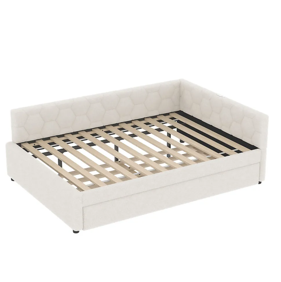 - 【Lit Gigogne Pratique】 Le lit dispose d’un tiroir-lit discret qui se déploie facilement, transformant l’assise en un second couchage pour accueillir invités ou optimiser l’espace dans les petites chambres.