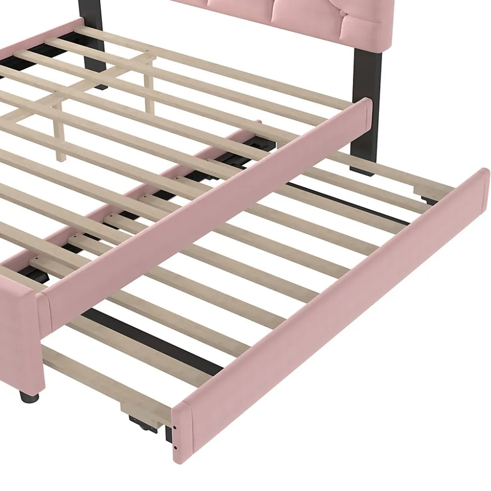 ▶ ▶ Détails ▶────────────────● Type de produit : Lit double● Taille du lit : 140 x 200 cm (sans matelas)● Couleur : Beige/Rose● Matériaux : Velours + MDF● Dimensions du produit : 211 x 152 x 104 cm● Dimensions intérieures du lit : 140 x 200 cm● Hauteur totale : 104 cm● Capacité de charge maximale : 226 kg● Nombre de colis : 2● Montage requis : Oui● Dimensions du colis : Veuillez consulter les spécifications● Épaisseur de matelas recommandée : 10-15 cm● Dimensions du lit gigogne : 90 x 190 cm● Capacité de charge du lit gigogne : 100 kg● Épaisseur de matelas recommandée pour le lit gigogne : 10 cm► Remarques ►※ Une marge d’erreur de 2 à 3 cm peut survenir en raison de la mesure manuelle.※ Toutes les images du produit sont prises à partir d’articles réels. Des variations de couleur peuvent apparaître en raison de la lumière ou d’autres facteurs.※ Ce produit est expédié en 2 colis, qui peuvent arriver à des moments différents. Merci de votre patience.