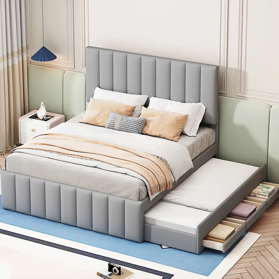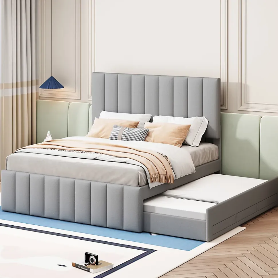 ▶ ▶ Détails ▶────────────────● Dimensions : 200 x 140 x 118 cm● Capacité de charge : 250 kg● Couleur : Gris● Matériaux : MDF + Lin + Métal● Nombre de lattes : 12● Poids total du produit : 55 kg● Poids total du colis : 60 kg● Montage requis : Montage complet / partiel● Outils supplémentaires requis : Tous les outils inclus / Tournevis● Évitez l’utilisation d’outils électriques : Oui● Nombre de colis : 2● Temps estimé de montage : 1 heure● Nombre de personnes recommandé : 2● Taille matelas supérieur : 200 x 140 cm, épaisseur 8-20 cm (Sans matelas)● Taille lit inférieur : 190 x 90 cm, épaisseur 10 cm (Sans matelas)► Remarques ►※ Ce produit est livré en 2 colis. Ils peuvent arriver séparément. Veuillez patienter.※ En raison de mesures manuelles, une erreur de 2 à 3 cm peut survenir.※ En raison de la lumière, des différences de couleur peuvent apparaître entre l’image du produit et le produit réel. Veuillez vous référer au produit reçu.※ Si vous avez des questions lors de l’installation, veuillez nous contacter dès que possible.