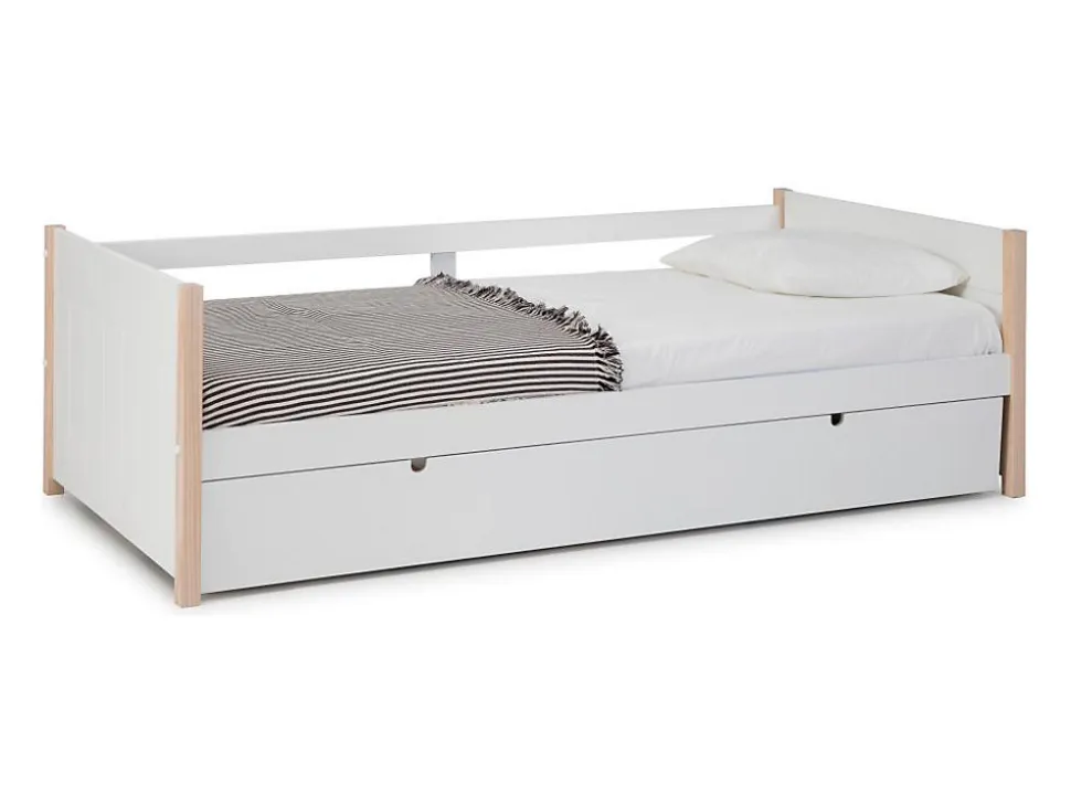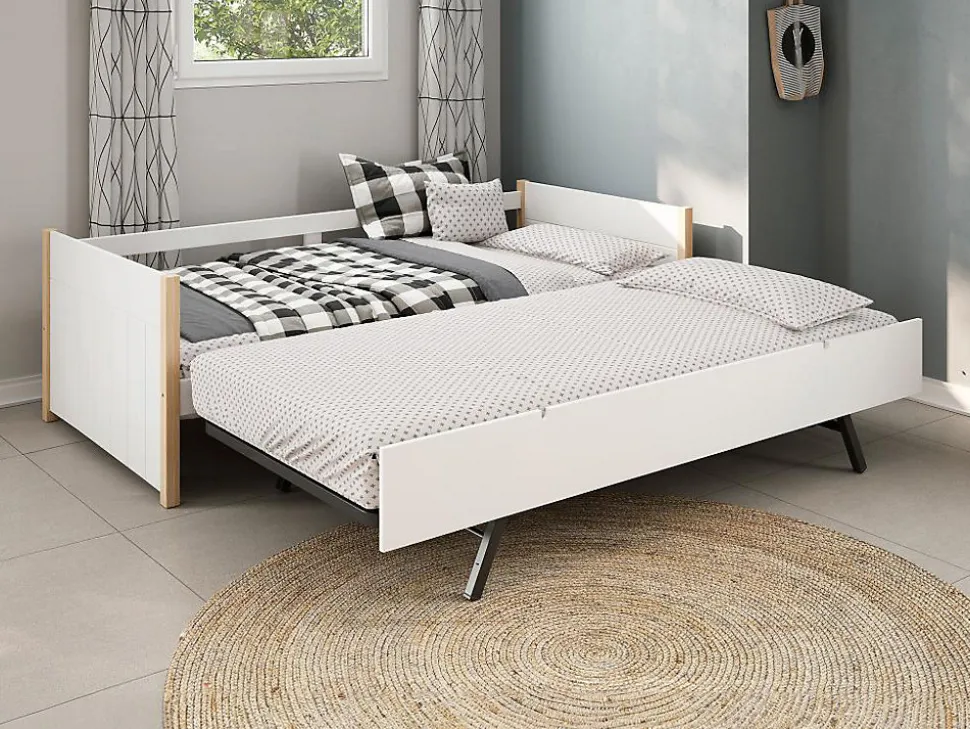 - Lit gigogne Pin, Mdf, Bois, Métal, Panneau et dérivés de bois Naturel clair, Blanc