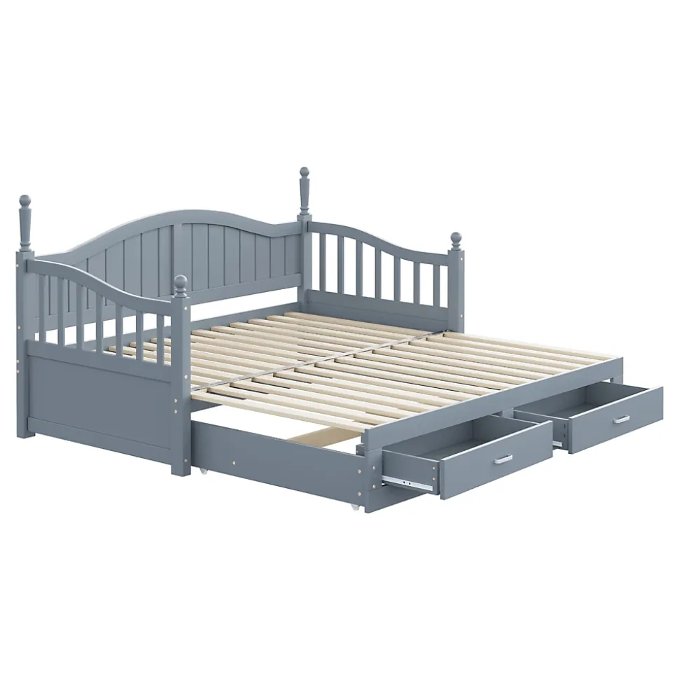 ▶ ▶ Détails ▶────────────────● Dimensions totales du produit : 197 x 97 x 95 cm● Poids total du produit : 43 kg● Capacité de poids : 150 kg● Matelas recommandé : 6-10 cm (matelas non inclus)● Type de produit : Lits gigognes● Dimensions du lit plus petit : 90 x 190 cm● Dimensions du lit complet : 180 x 190 cm● Couleur : Gris● Matériau : Pin + Contreplaqué + MDF● Montage : Montage complet requis / Montage partiel● Nombre de lattes : 27● Temps estimé de montage : 1 heure● Personnes recommandées pour l’assemblage : 2● Outils nécessaires : Tous les outils sont inclus (tournevis). Aucun outil électrique nécessaire.► Remarques ►※ Ce produit est livré en 2 colis. Ils peuvent arriver à des moments différents. Merci de patienter.※ En raison des mesures manuelles, un écart de 2 à 3 cm peut se produire.※ Les images du produit ont été prises avec le produit réel, mais en raison de l’éclairage et d’autres facteurs, des différences de couleur peuvent apparaître.※ Si vous avez des questions lors de l’installation, veuillez nous contacter rapidement.