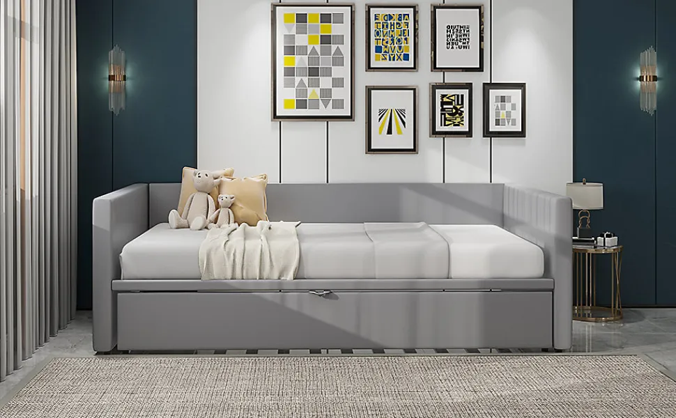 ▶ ▶ Détails ▶────────────────● Type de produit : Lit gigogne● Matériau : Tissu en velours, rembourrage● Couleur : Gris● Dimensions totales du produit (L × l × H) : 213 × 99(188) × 74 cm● Poids : 45 kg● Nombre de colis : 2● Poids total des colis : 51,55 kg● Dimensions du matelas : 90 × 200 cm (extensible à 180 × 200 cm)● Lattes : Incluses► Remarques ►※ Ce produit propose des services personnalisés. Pour plus de détails, veuillez contacter le vendeur.※ En raison de la mesure manuelle, il peut y avoir une différence de 2 à 3 cm.※ Toutes les images du produit ont été prises avec des produits réels, mais des différences de couleur peuvent apparaître en raison de l’éclairage ou des différences d’écran.