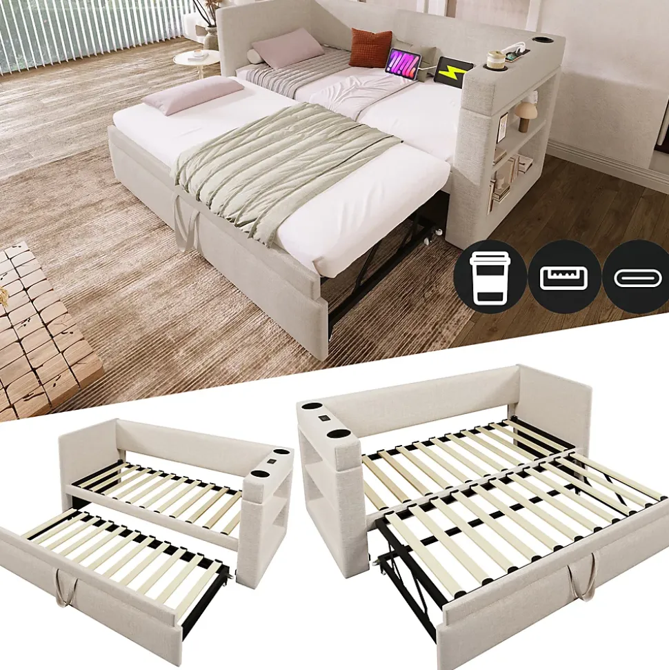 - 【Gain de place】 Ce canapé-lit, grâce à sa fonction extensible, offre un espace de couchage supplémentaire, idéal pour les invités ou les petites pièces.