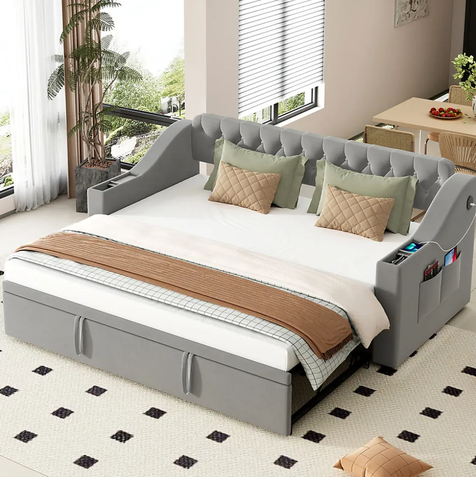- 【Rangements Astucieux】 Les accoudoirs intègrent des compartiments avec système push-pull pour un accès rapide à livres, télécommandes ou petits objets, tandis que des étagères latérales ajoutent des solutions de rangement supplémentaires.