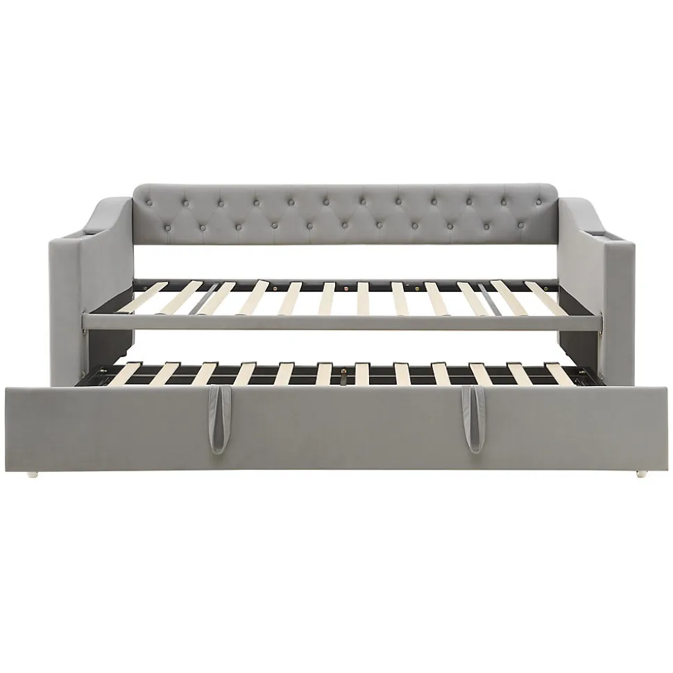 ▶ ▶ Détails ▶────────────────● Nom du produit : Lit gigogne● Couleur : Gris● Dimensions totales du produit : 215 x 98,5 x 78,5 cm● Dimensions détaillées : Veuillez consulter l’image des dimensions● Nombre de colis : 2● Poids total du produit : 54 kg● Capacité de charge : 300 kg● Épaisseur de matelas recommandée (sans matelas) : 12-14 cm (90 x 190 cm)● Épaisseur de matelas recommandée pour le lit extensible : 8-10 cm (90 x 190 cm)● Type de produit : Lit rembourré● Taille : 90 x 190 cm● Matériaux : Tissu en velours + Métal + Contreplaqué + MDF● Nombre de lattes : 22● Niveau de montage : Montage complet requis / Montage partiel● Temps de montage estimé : 1 heure● Nombre de personnes recommandé : 2● Outils supplémentaires requis : Tous les outils inclus / Tournevis● Évitez l’utilisation d’outils électriques : Oui● Poids total du colis : 58 kg► Remarques ►※ Ce produit est expédié en 2 colis. Ils peuvent arriver séparément. Veuillez patienter.※ En raison de la mesure manuelle, une erreur de 2 à 3 cm peut se produire.※ Toutes les images des produits sont prises à partir d’articles réels, mais en raison de la lumière du soleil et d’autres facteurs, de légères différences de couleur peuvent apparaître.※ Si vous avez des questions pendant l’installation, veuillez nous contacter dès que possible.
