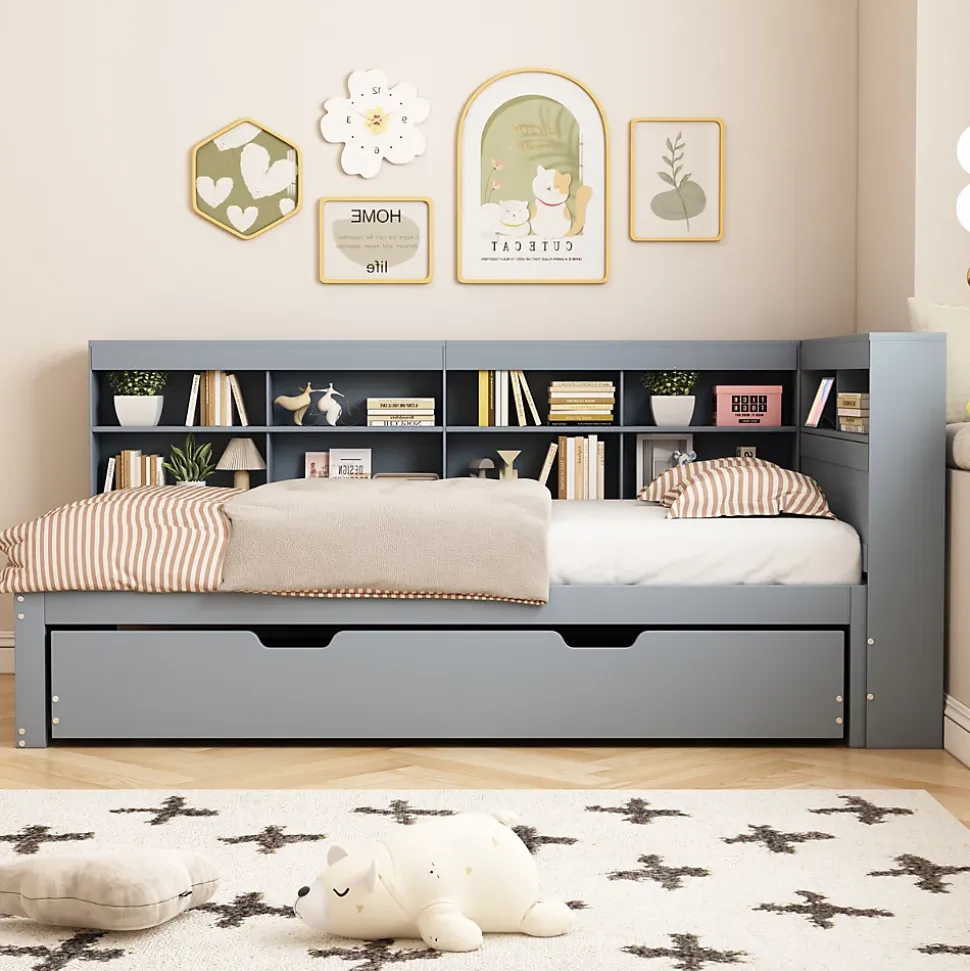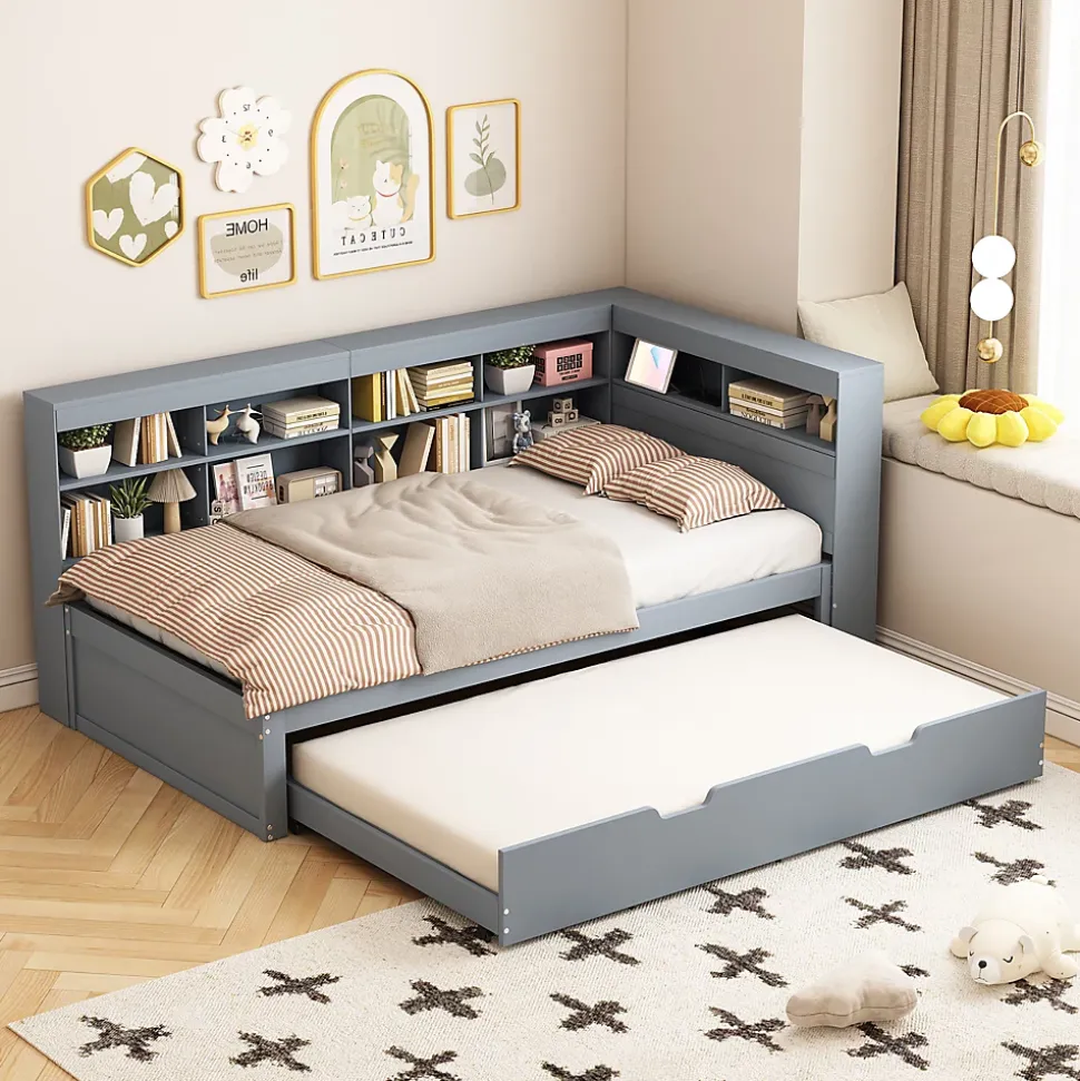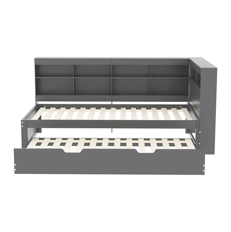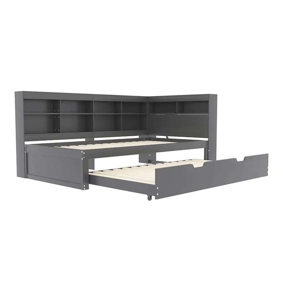 ▶ ▶ Détails ▶────────────────● Dimensions totales du produit : 222,5 x 116 x 92,5 cm● Dimensions du lit : 90 x 200 cm + 90 x 190 cm (sans matelas)● Poids maximal supporté : 120 kg● Matériau : Bois de pin + Contreplaqué + MDF● Nombre de lattes : 26● Montage requis : Oui● Couleur : Gris● Nombre de colis : 3● Poids total du produit : 65,25 kg● Poids total du colis : 72,75 kg● Temps de montage estimé : 2 heures● Nombre de personnes recommandé : 2● Outils nécessaires : Tous les outils sont inclus (tournevis)● Évitez l’utilisation d’outils électriques : Oui► Remarques ►※ Ce produit est livré en 3 colis et peut ne pas arriver en même temps. Veuillez patienter.※ En raison des mesures manuelles, un écart de 2 à 3 cm peut se produire.※ En raison de l’éclairage, des différences de couleur peuvent apparaître entre l’image du produit et le produit réel. Veuillez vous référer au produit que vous avez reçu.※ Si vous avez des questions pendant l’installation, veuillez nous contacter dès que possible.