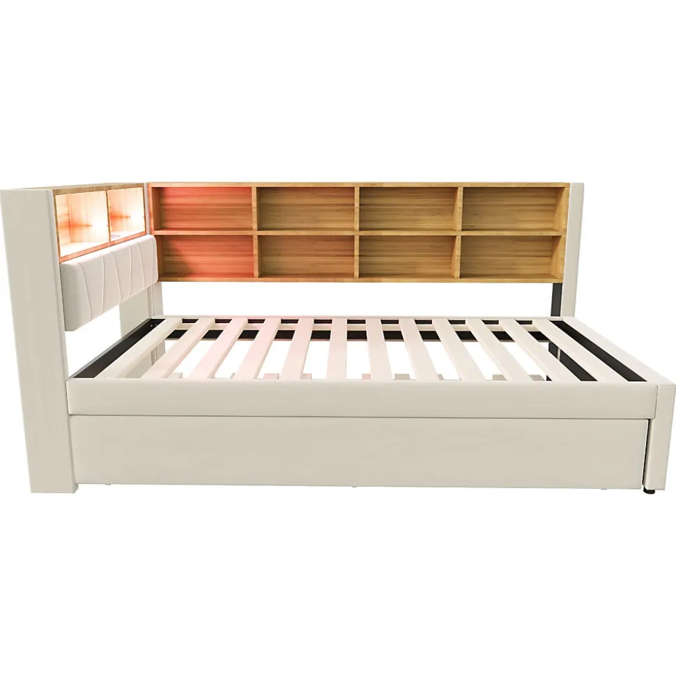 - 【Éclairage pratique et ports de charge】 L’espace de rangement intégré est équipé de lumières LED et de multiples ports de charge (USB, Type-C, prise), vous permettant de charger vos appareils facilement tout en créant une ambiance agréable et relaxante.