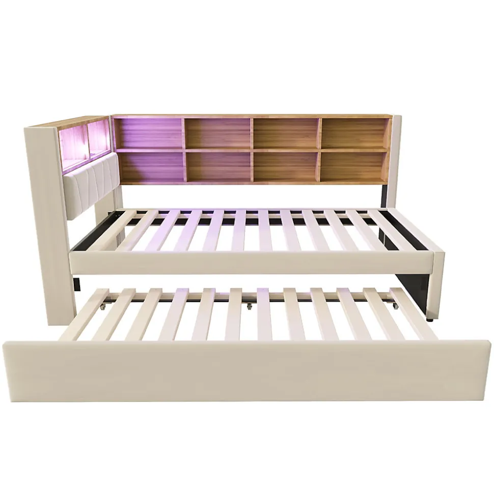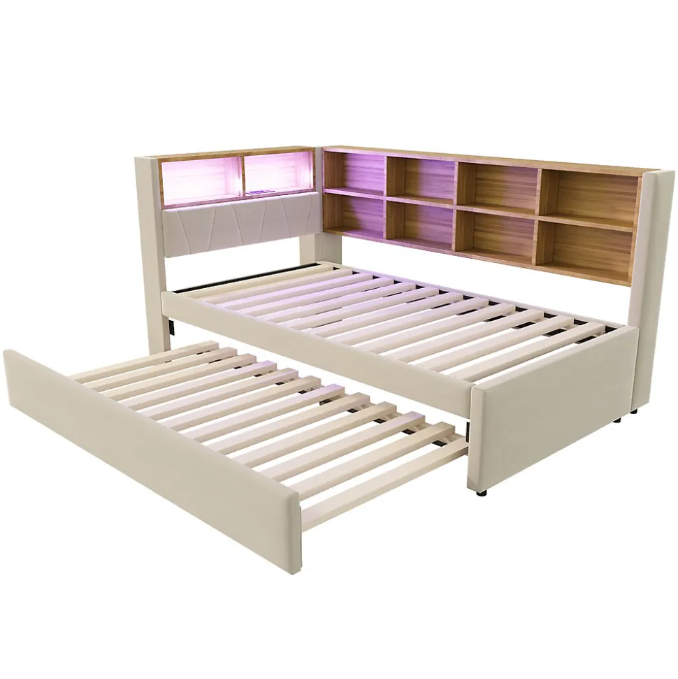▶ ▶ Détails ▶────────────────● Nom du produit : Lit gigogne● Couleur : Beige● Matériau : Flanelle, métal, contreplaqué, MDF● Dimensions du lit principal : 90 × 200 cm● Dimensions du lit gigogne : 90 × 190 cm● Dimensions totales : 213 × 103 × 98 cm● Poids total du produit : 53,92 kg● Poids total des colis : 57,92 kg● Nombre de colis : 2● Capacité de charge : 150 kg● Épaisseur de matelas recommandée : 8–15 cm● Nombre de lattes : 24● Temps d’assemblage estimé : 1,5 heure● Nombre de personnes recommandé : 2–3 personnes● Outils nécessaires : Tous les outils/tournevis sont inclus dans l’emballage● Éviter l’utilisation d’outils électriques : Oui● Degré d’assemblage : Assemblage complet requis / assemblage partiel requis● Dimensions détaillées : Veuillez consulter le schéma des dimensions► Remarques ►※ En raison de mesures manuelles, une tolérance de 2–3 cm peut s’appliquer.※ Toutes les images produits ont été prises avec le produit réel ; de légères différences de couleur peuvent apparaître selon la lumière.※ Le produit est expédié en 2 colis, qui peuvent ne pas arriver simultanément.