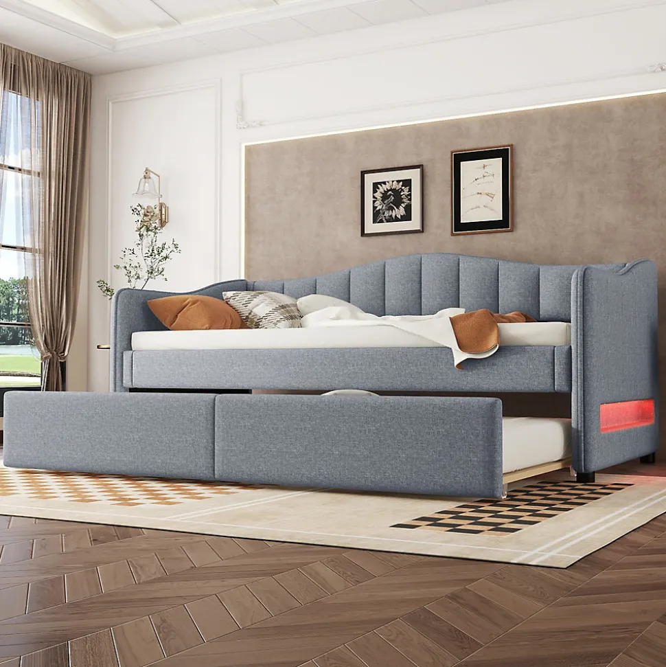 - 【Style Intemporel】 Le design élégant et la couleur grise de ce lit s’adaptent facilement à tous les styles de décoration intérieure, apportant une touche moderne et sophistiquée qui convient parfaitement à toutes les familles.