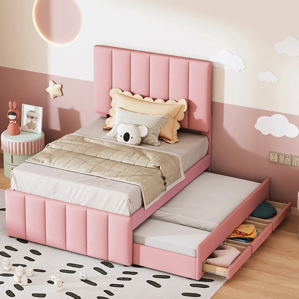 ▶ ▶ Détails ▶────────────────● Dimensions : 200 x 90 x 118 cm● Capacité de charge : 150 kg● Couleur : Rose● Matériaux : MDF + Lin + Métal● Nombre de lattes : 12● Poids total du produit : 42 kg● Poids total du colis : 50 kg● Montage requis : Montage complet / partiel● Outils supplémentaires requis : Tous les outils inclus / Tournevis● Évitez l’utilisation d’outils électriques : Oui● Nombre de colis : 2● Temps estimé de montage : 1 heure● Nombre de personnes recommandé : 2● Taille matelas supérieur : 200 x 90 cm, épaisseur 8-20 cm (Sans matelas)● Taille lit gigogne : 190 x 90 cm, épaisseur 10 cm (Sans matelas)► Remarques ►※ Ce produit est livré en 2 colis. Ils peuvent arriver séparément. Veuillez patienter.※ En raison de mesures manuelles, une erreur de 2 à 3 cm peut survenir.※ En raison de la lumière, des différences de couleur peuvent apparaître entre l’image du produit et le produit réel. Veuillez vous référer au produit reçu.※ Si vous avez des questions lors de l’installation, veuillez nous contacter dès que possible.