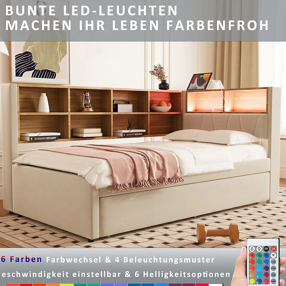- 【Utilisation multifonctionnelle】 Ce canapé-lit offre un espace de couchage confortable tout en intégrant LED et ports de recharge (USB, Type-C, prises), permettant de détendre et recharger vos appareils simultanément.